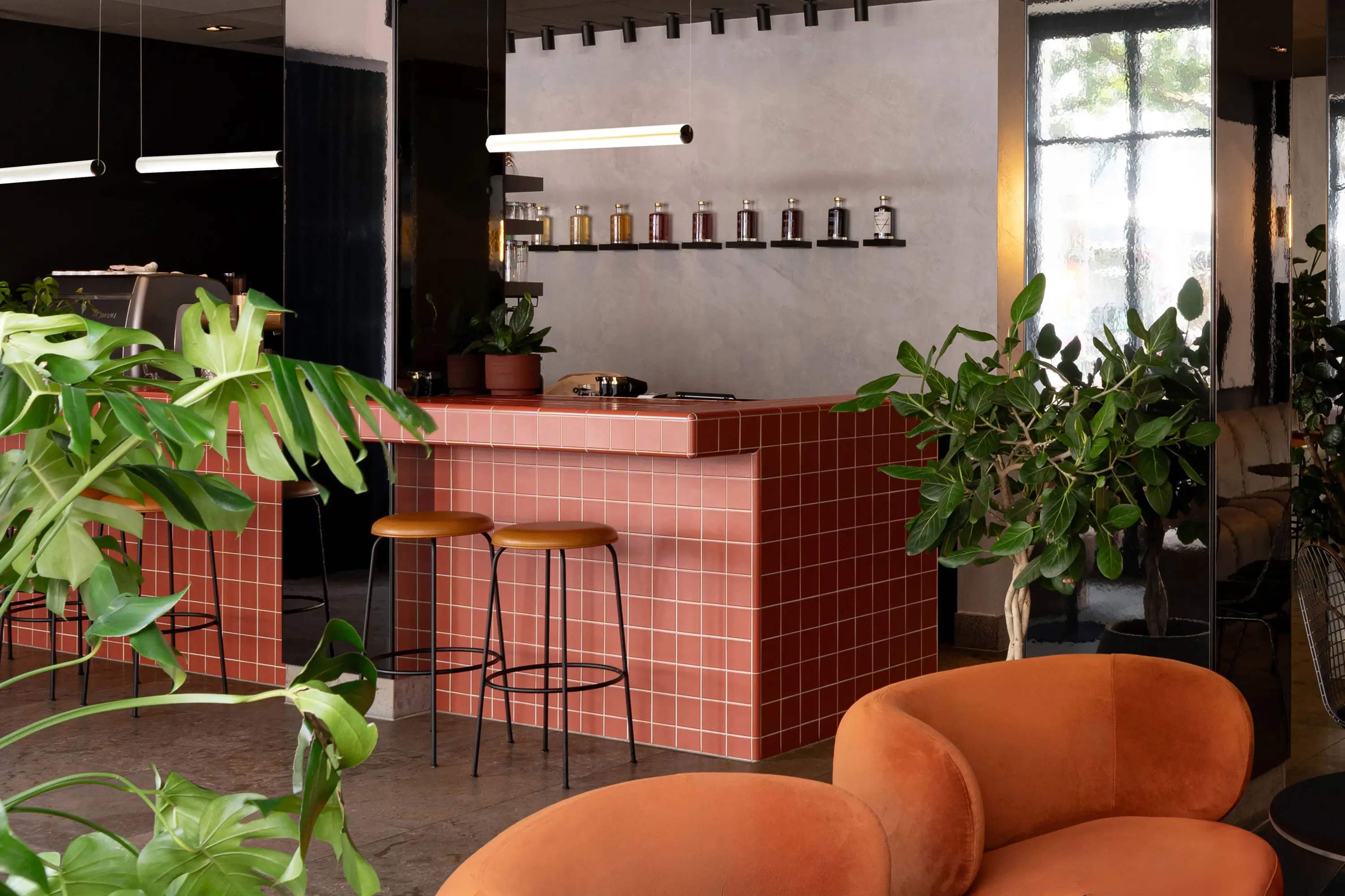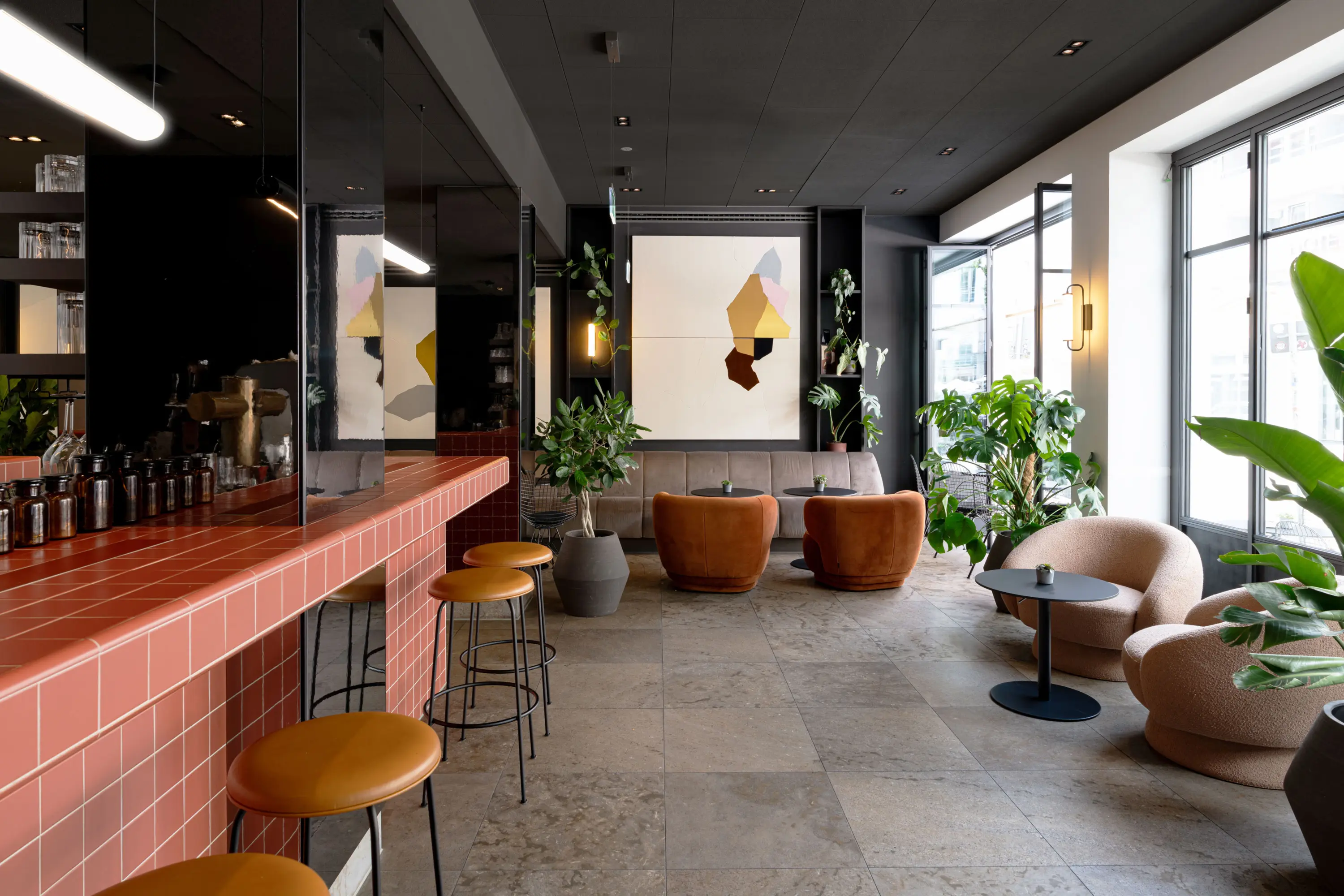 The TERRA BAR is a light-flooded, multifunctional space – far removed from the classic hotel breakfast room. Terracotta as the guiding hue, refined earthy tones, cognac-coloured leather, and preserved industrial elements define the interior’s distinctive character. At its heart lies the stylish bar – the centrepiece of the hotel and Germany’s very first bar to serve exclusively bottled cocktails. Sustainably conceived and crafted to the highest standard – featuring upcycled furniture, mirrored columns, and artworks by Munich-based artist Hanna Klingseisen. A place to linger, experience, and enjoy – day and night.