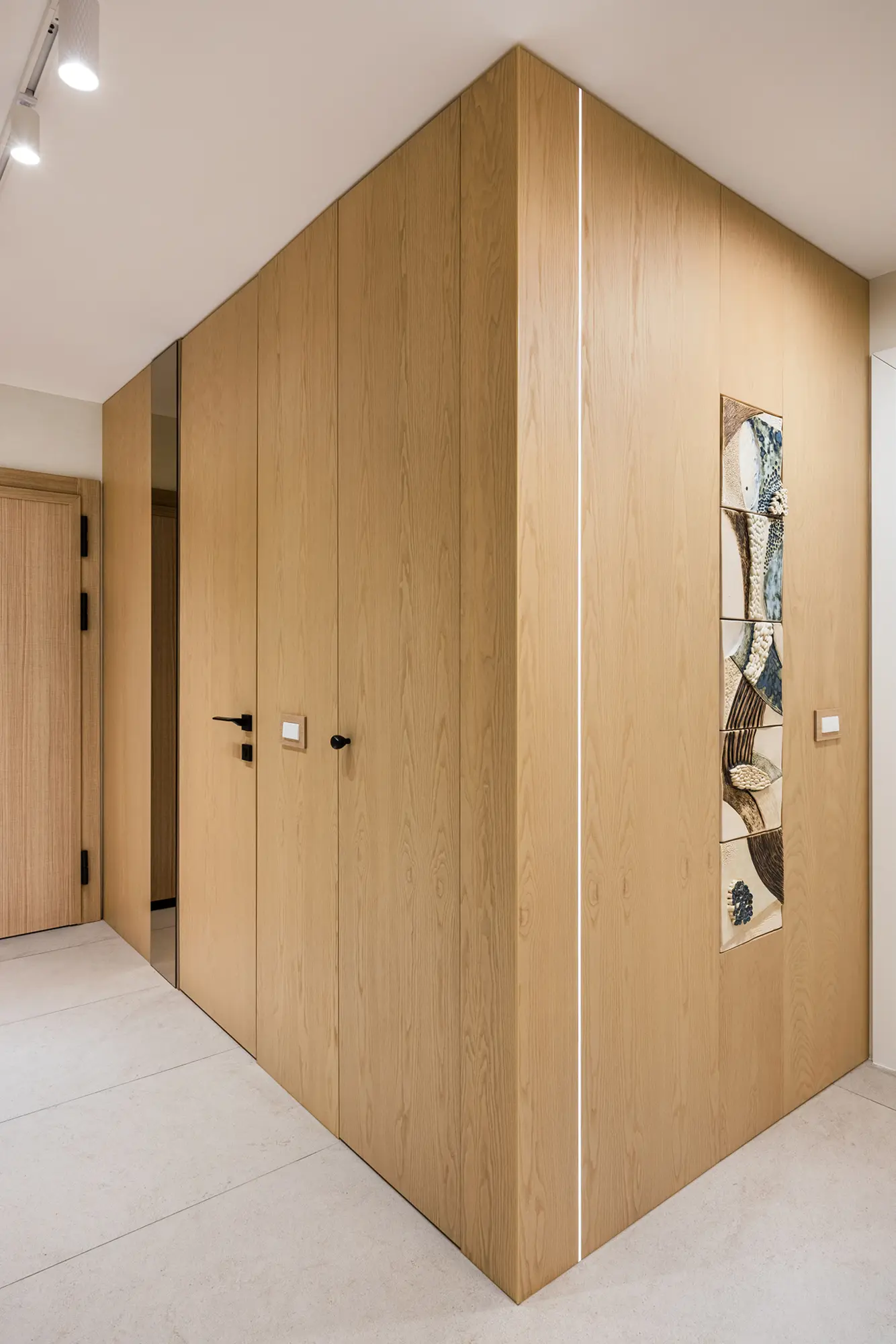 The House of Rezos is a transformative renovation of a 60-year-old socialist apartment into a modern office with a strong design identity. Located in southern Sofia at the foot of Vitosha Mountain, the project combines innovative materials, functional layouts, and artistic elements. Highlights include a full-wall decor with natural ingredients in the meeting room and a handmade ceramic installation set in natural acacia veneer in the vestibule. Each detail reflects dedication to craftsmanship, innovation, and timeless aesthetics, resulting in a refined and inspiring workspace.