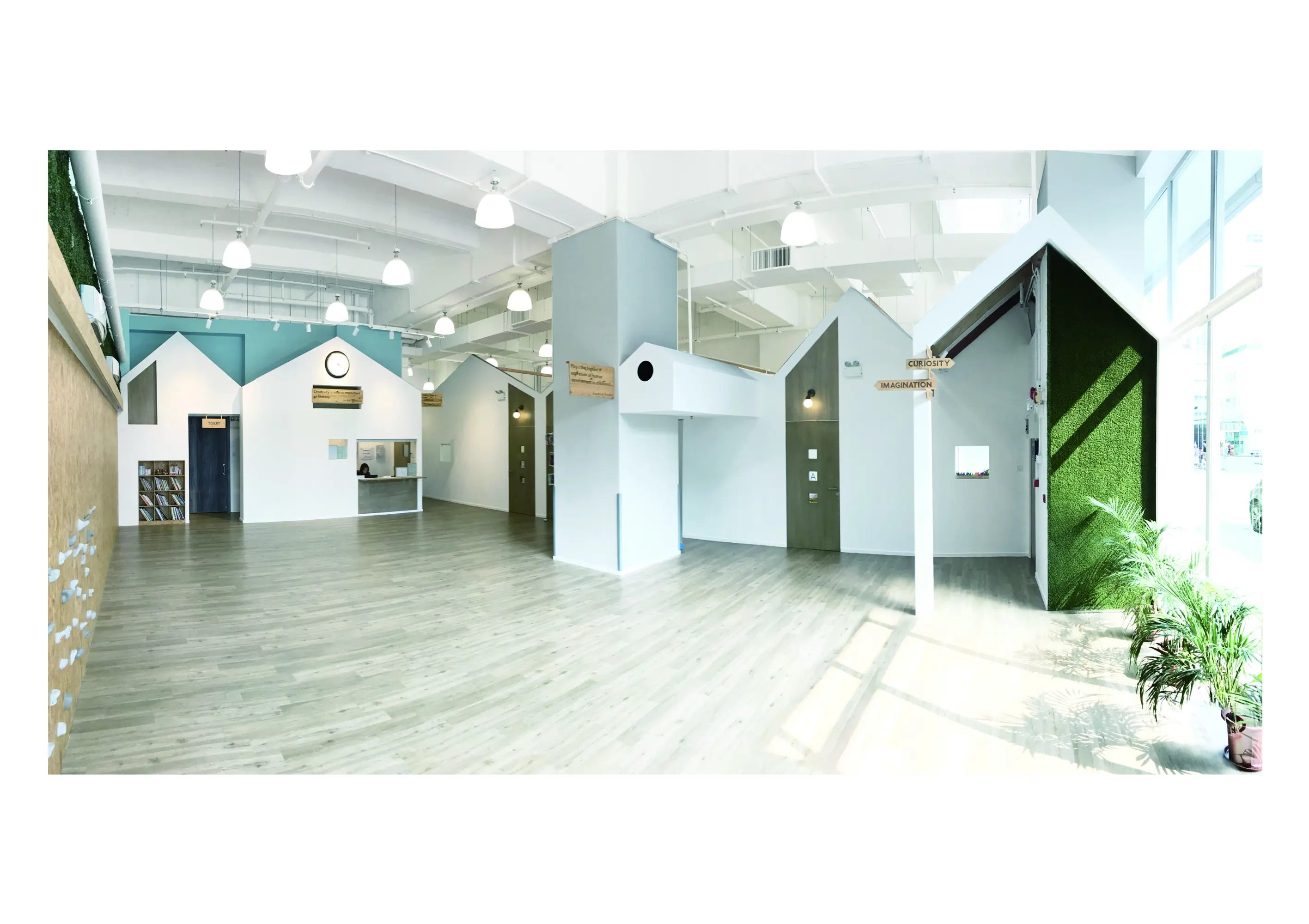 Nestled in a Hong Kong typical tower podium, this kindergarten challenges the standard "classroom box." Guided by Reggio philosophy, where children are active constructors of knowledge and part of a big community, the design integrates iconic mini-house objects with a central plaza within the cubic high-rise architecture. Of various scales and proportions, it defines a child-friendly design with plenty of room for playing, learning and making their own discoveries from different angles and multiple levels. The kindergarten transcends its urban constraint into a lively and welcoming Village within a rigid Vertical City.