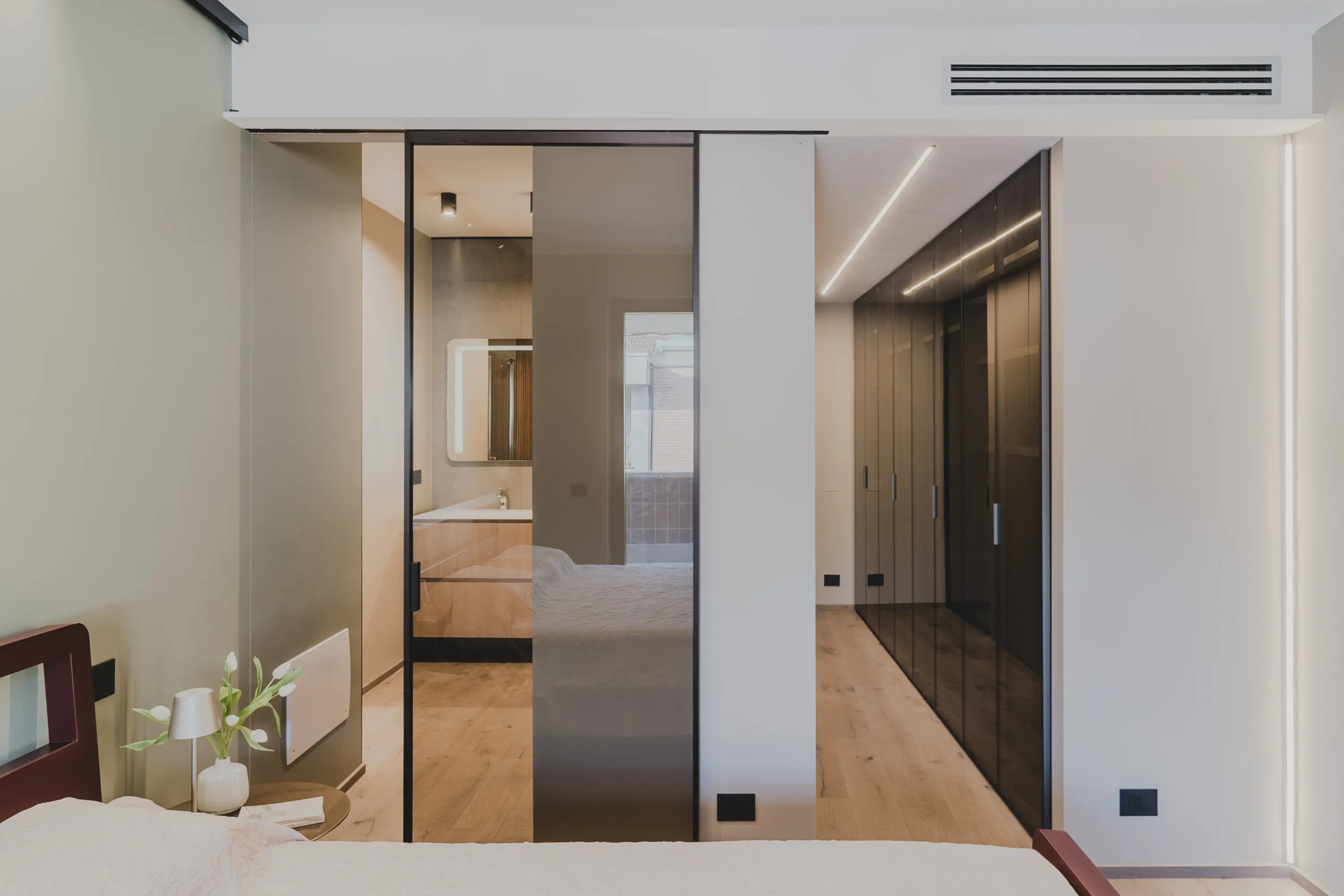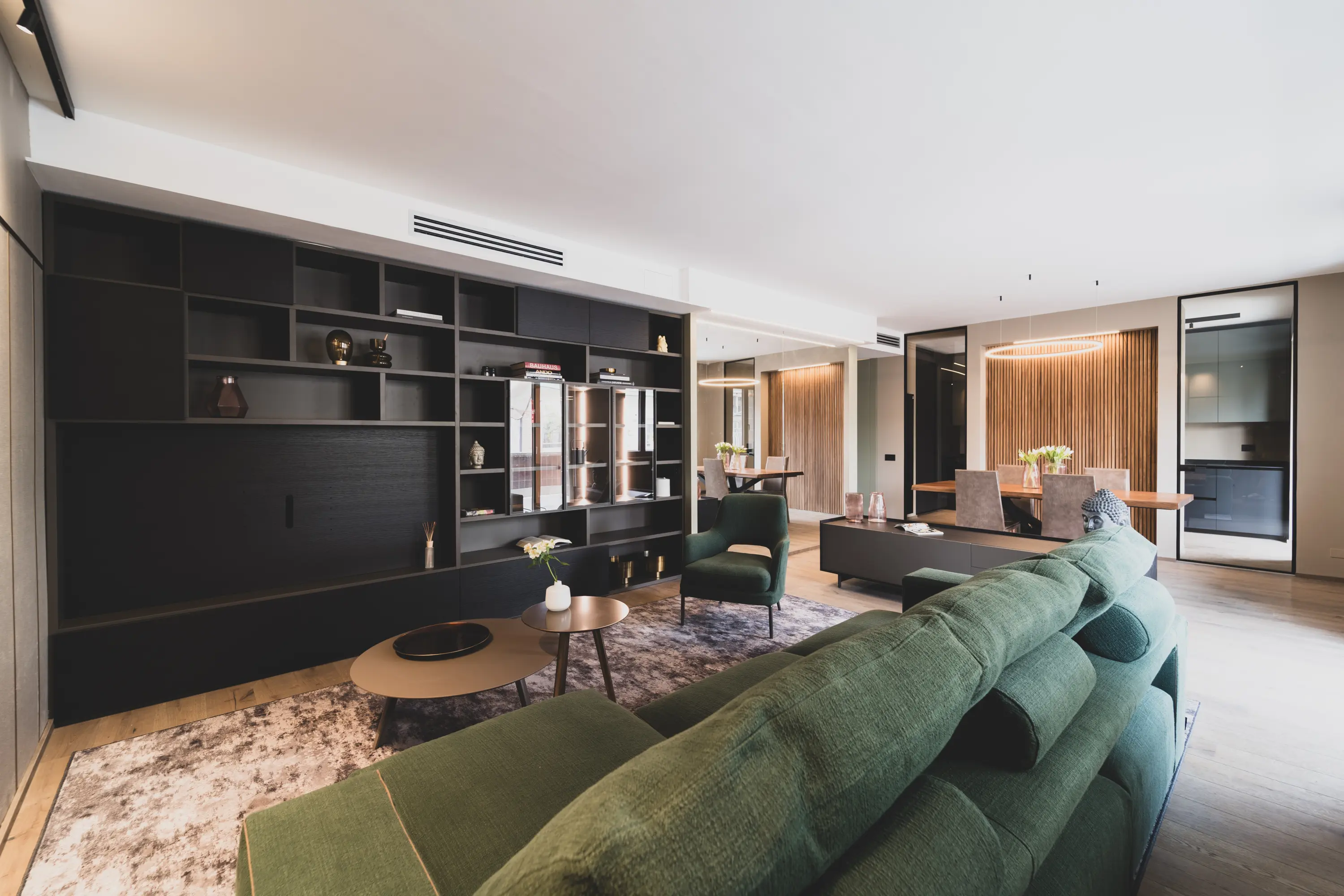 Architect Biondo led the renovation of a 200 sqm two-level penthouse with terraces in Novara. The flat didn’t reflect the owners' taste, prompting a full transformation. The architect stripped away all additions, revealing the core volume and redefining the layout to create a cohesive, harmonious space. The renovation involved new floors, walls, and spatial divisions, plus advanced technology like home automation and central air conditioning. noLogo|architecture oversaw every detail—from lighting and finishes to bespoke furniture and hidden closets—achieving a refined, contemporary home with a warm atmosphere.