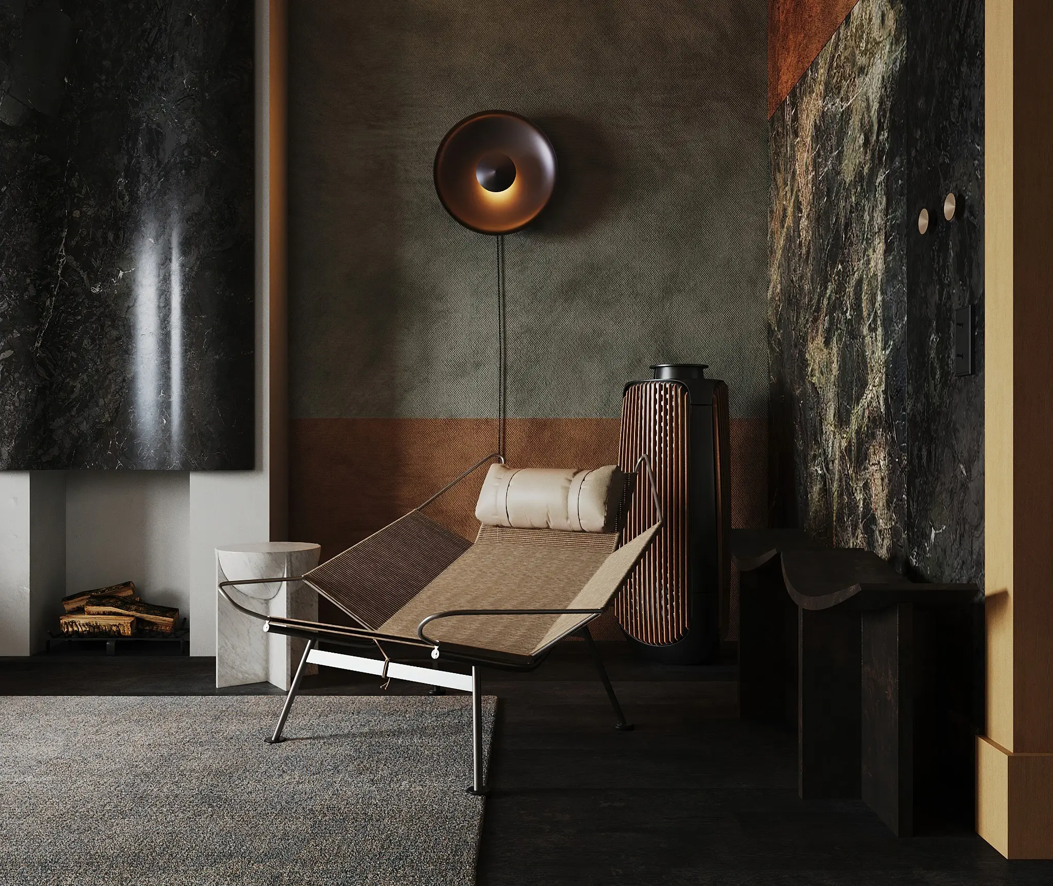 An eclectic, vibrant style with a subtle historical touch, inspired by Ebba Nina Beck Carstensen. Danish design classics blend with bespoke pieces—timeless, emotional, and visually striking. Spaces balance softness and rigidity, light and shadow. A bold aesthetic of contrasts, free from banality, where each object holds expressive power. Unconventional interiors with daring colours and patterns, evoking nostalgia while firmly rooted in the contemporary.