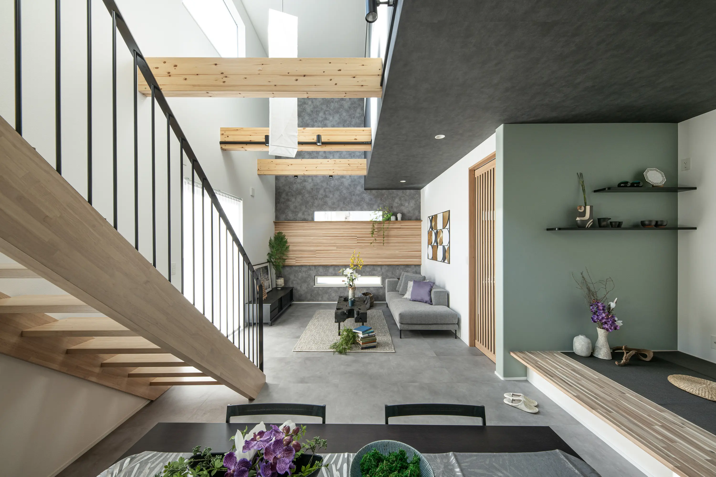 Two houses like "hideaway inns" with the theme of extraordinary spaces. One house "Traveling Heart Doma" features a tiled living room inspired by "Tori Doma" (traditional Japanese passageway) and a large open ceiling, creating an extraordinary feeling of being out of the ordinary while traveling or at a café. The other house "Praise of Shadows"allows you to enjoy the shadows created by the soft natural light from the small garden and skylights, as well as the glittering spatial presentation created by architectural lighting. These work tackle the reconsideration of Japanese "Machiya" architecture.