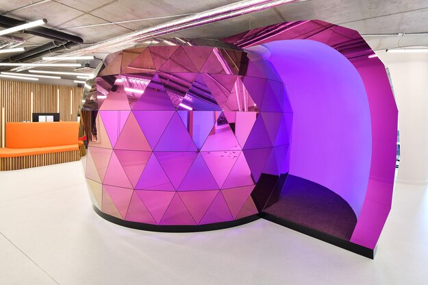 A heart. From the outside, strong, unmistakable, and loud. Inside, silence – complete isolation. Yet those who listen closely can feel that the structure is alive. Its heartbeat pierces the quiet, becoming a sense of security, an intimate fusion of architecture and humanity. The shell becomes a second skin. It transforms into sky and earth, yet there is no horizon. Sympathy turns into empathy, and one understands with all the senses the message this work of art conveys. The heart reflects its surroundings. People see themselves mirrored in the triangles and recognize one thing: themselves.