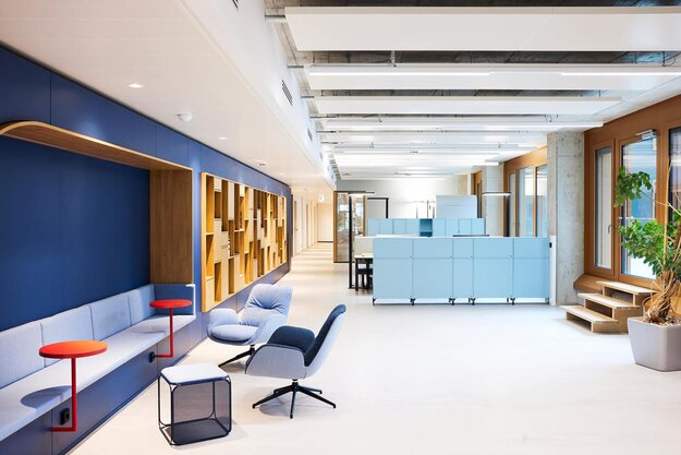 The design concept for the new office space at the headquarters of the biotechnology company “NanoTemper” perfectly reflects the progress and dynamism of the company with its contemporary New Work approach. The well thought-out spatial concept promotes efficient work processes and at the same time offers ample opportunity for communication and privacy.