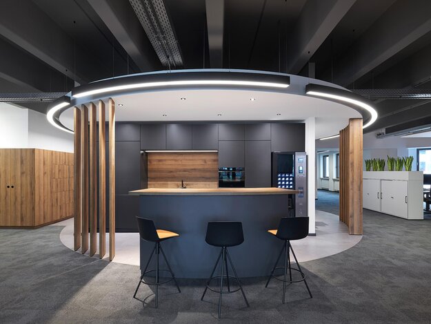 The redesign of the work environments exhibits a keen sense of balance between openness and privacy. The central work café, inspired by the corporate philosophy, encourages communication and reflects the rotational dynamics inherent in the field of work. »Rösler Innowelt« impresses with a strong identification with the corporate identity.