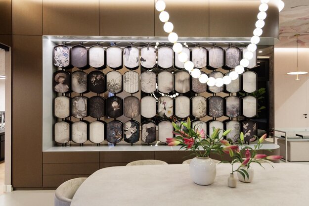 The showroom & office design for Studijo Wallart impresses with its successful combination of functionality and aesthetics, which supports the creative work process. The use of neutral colors and glass surfaces creates a modern and high-quality look while also creating a flexible environment that perfectly showcases future collections.