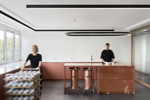 The project optimizes workflows through a design precisely tailored to the needs of quality assurance and product development: A central dishwashing kitchen and the combination of tasting counters and office streamline processes. Special requirements for blind tasting have been integrated into the meeting rooms. Design elements that reflect the company's history also strengthen brand identification, while teapoints and lounge areas foster creative exchange.
