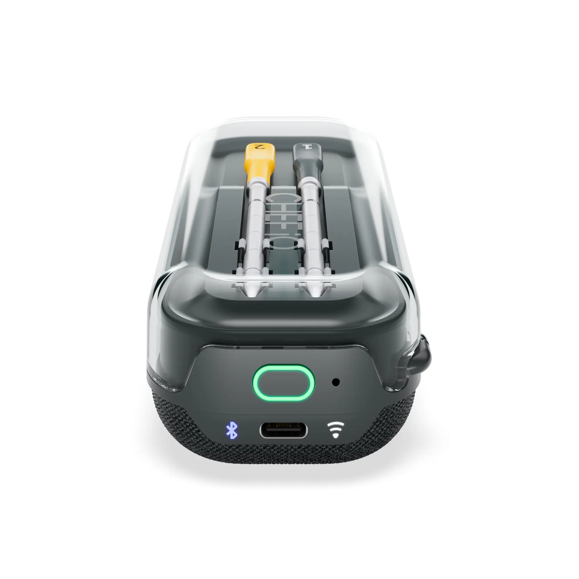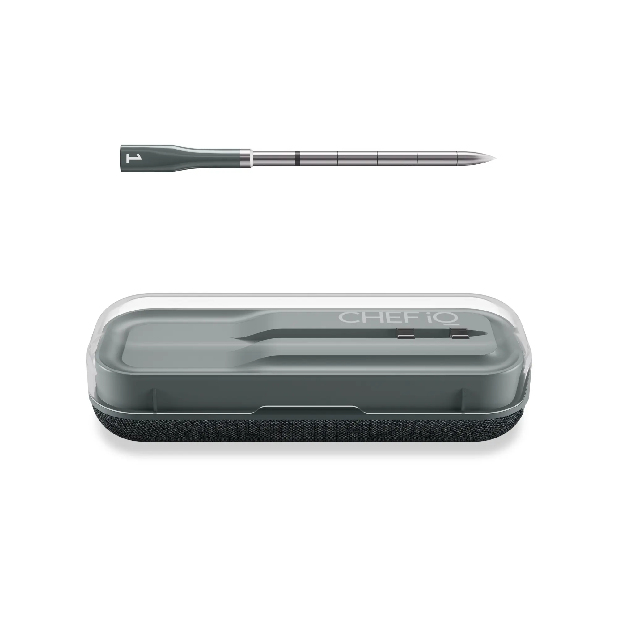 Ultra-thin iQ Sense smart oven & grill thermometer uses an advanced algorithm to calculate precise cooking times and temperatures for perfectly cooked meat, every time. It’s designed for incredible accuracy within 1°F. It is equipped with a 4.75” long design and an additional internal sensor for upgraded accuracy. This Bluetooth meat thermometer digital displays real-time alerts and updates directly on your smart device via the CHEF iQ App, along with Smart Hub audio reminders to flip, baste, or remove from heat. The iQ Sense is engineered to endure heat up to 1000°F. Unlimited wireless range and 70 hours of usage on a full charge.