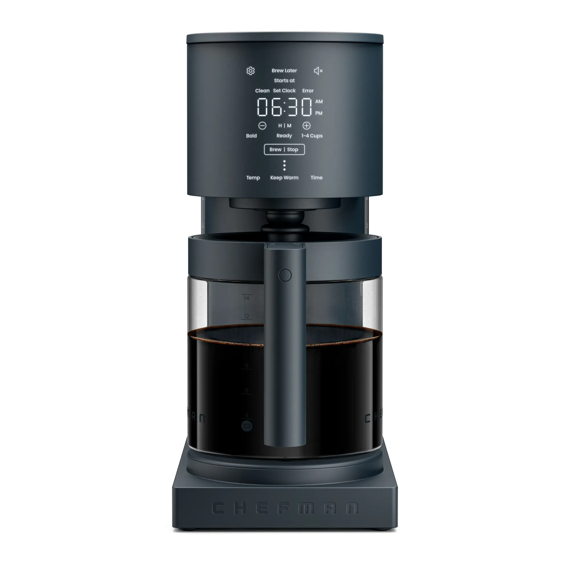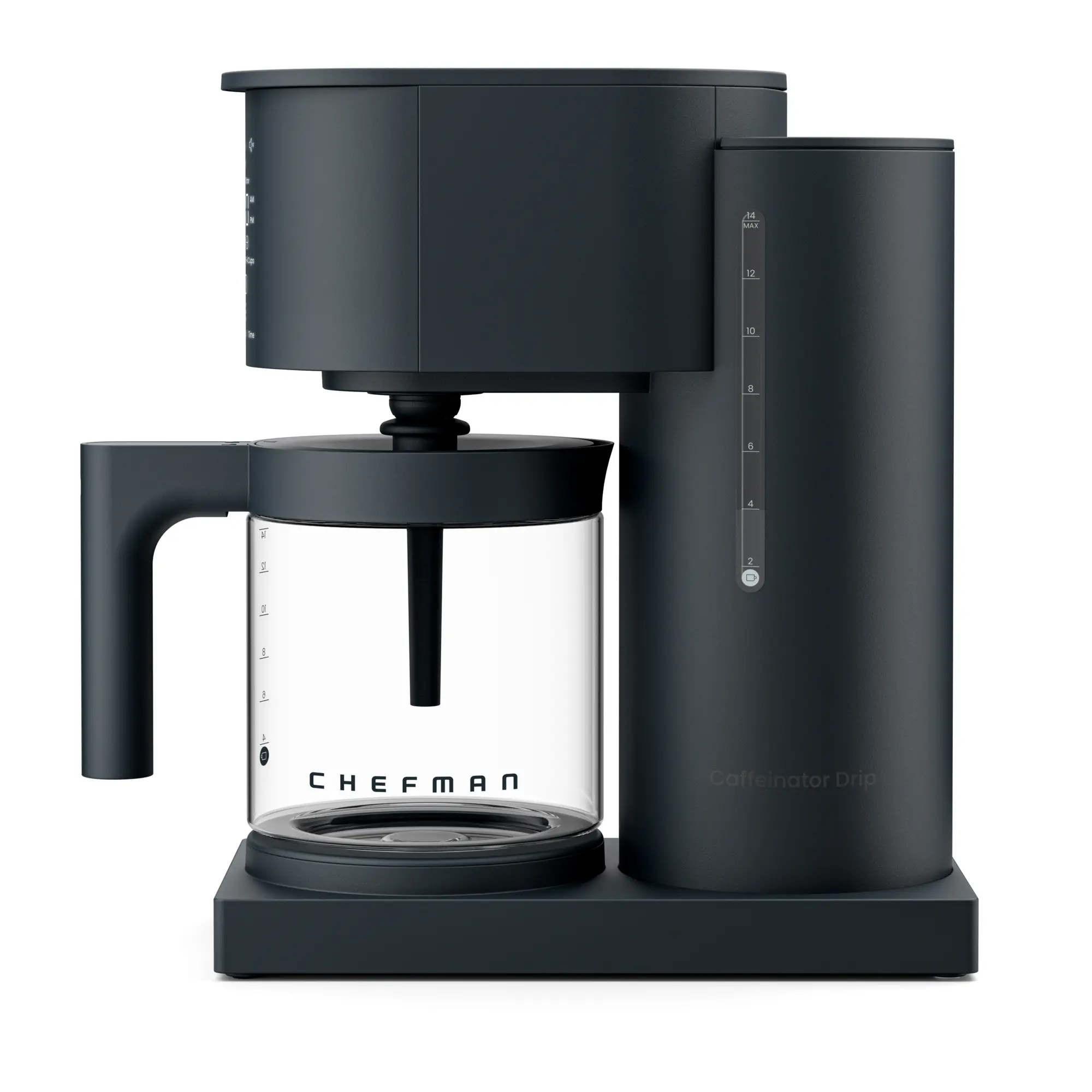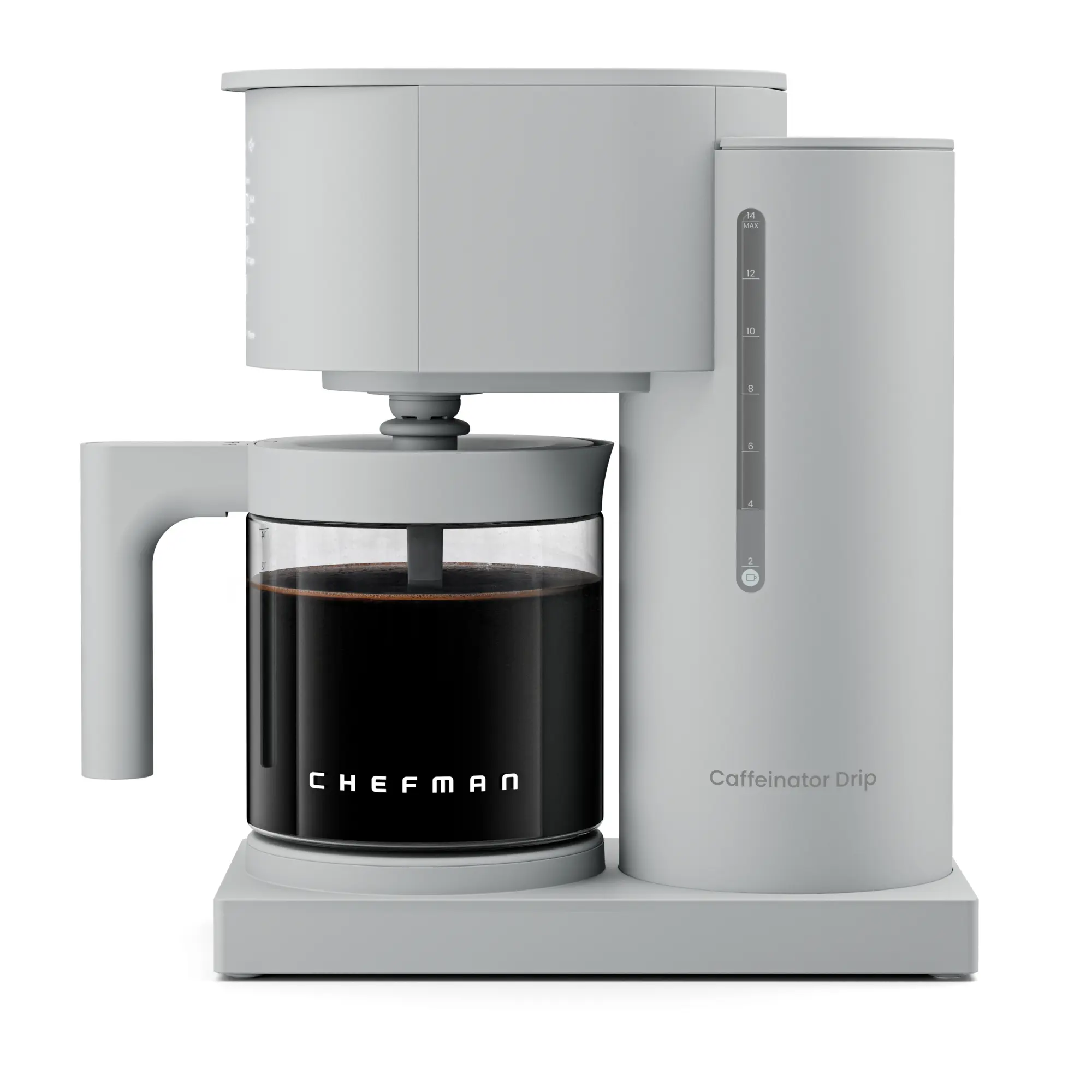 The Chefman Caffeinator C14-DR14 is a drip coffee revolution. With a 14-cup carafe, BalancedBrew™ funnel, and blooming cycle, it delivers rich, even flavor from first sip to last. Brew bold or classic, single-serve or full pot, and wake up to fresh coffee with its 24-hour programmable timer. The customizable warming plate keeps coffee hot for hours at your preferred temp. Featuring a reusable GoldTone® filter and extra-wide showerhead, this machine redefines drip brewing—smart, powerful, and built to outperform.