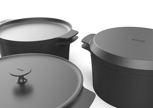This Dutch oven impresses with its successful combination of traditional material usage and innovative design. With multifunctional lids that can be used as a grill or griddle, the »The STUR Dutch Oven« demonstrates high adaptability to various cooking needs. Ergonomic handles and excellent heat retention complete the harmonious package.