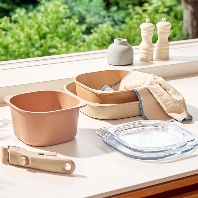 FIKA Objet Comfort is designed for everyday convenience with its ergonomic design. The lids serve double duty as tableware, optimizing space and functionality. Featuring stackable elements and a detachable handle, it maximizes storage and cooking space. Crafted in commonly used sizes, from soup simmering to grilling, it caters to various culinary needs. Plus, the ceramic coating ensures effortless use and guarantees safety, being free from harmful substances like PFAS, lead, and cadmium.