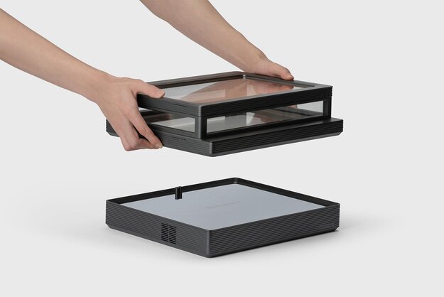 The graphene cooker stands out with its innovative use of graphene technology, enabling wireless and energy-efficient cooking. Its transparency allows precise control over the cooking process, while the versatility offered by removable components accommodates various cookware sizes. This combination distinguishes the »Graphene Cooker« in the field of kitchen design.