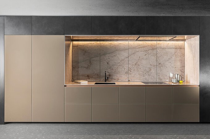 Introducing NOBREZA - the model in which SARTIE combines the timeless beauty of wood with the elegance of modern design. The RIVELO cabinet embodies the concept of harmony between form and function. Its "sliding doors" system allows you to "close off" the equipped kitchen area behind elegant panels, seamlessly integrating your kitchen into the interior. The doors are made from a single fascia, designed to align in one plane, creating a continuous surface when closed.