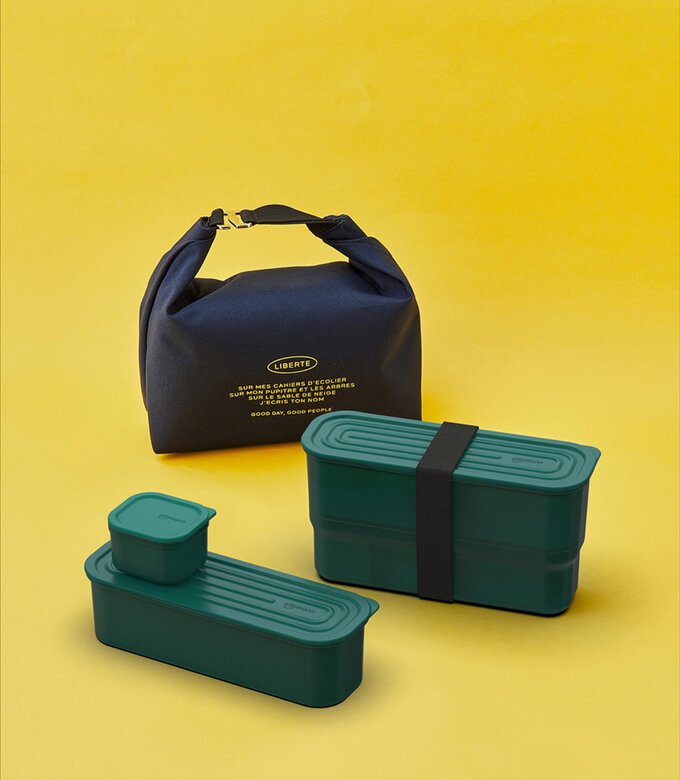The Slim-up lunchbox is designed to be ultra-slim, making it convenient for office workers to carry in a bag. The lid, made of silicone, also serves as a chopstick holder and is crafted to prevent noise by stopping the chopsticks from clattering. The container for side dishes is divided into three integrated sections to prevent mixing. Initially offered as a two-tier lunchbox, it can be upgraded to three tiers with by purchasing extra containers, removable dividers, and sauce containers. The lid displays a “Wave” design that combines a visually soothing rectangular shape with gently rising curves, providing an orderly yet dynamic appearance.