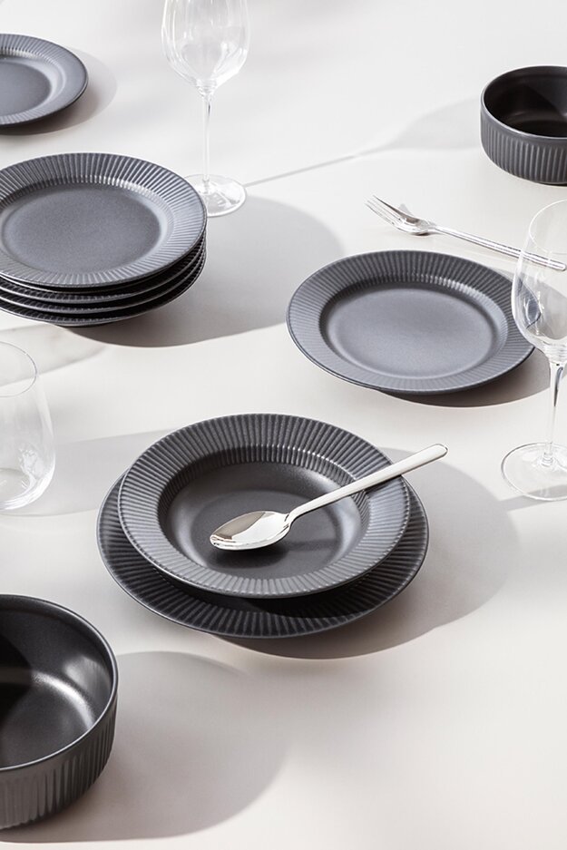 The plates in “The Legio Nova Black Series” offer a sophisticated design that creates a harmonious balance between rustic Nordic tradition and modernity with its ribbed structure and matt surface. They set the scene for culinary creations and at the same time meet the highest functional demands in terms of quality and durability.