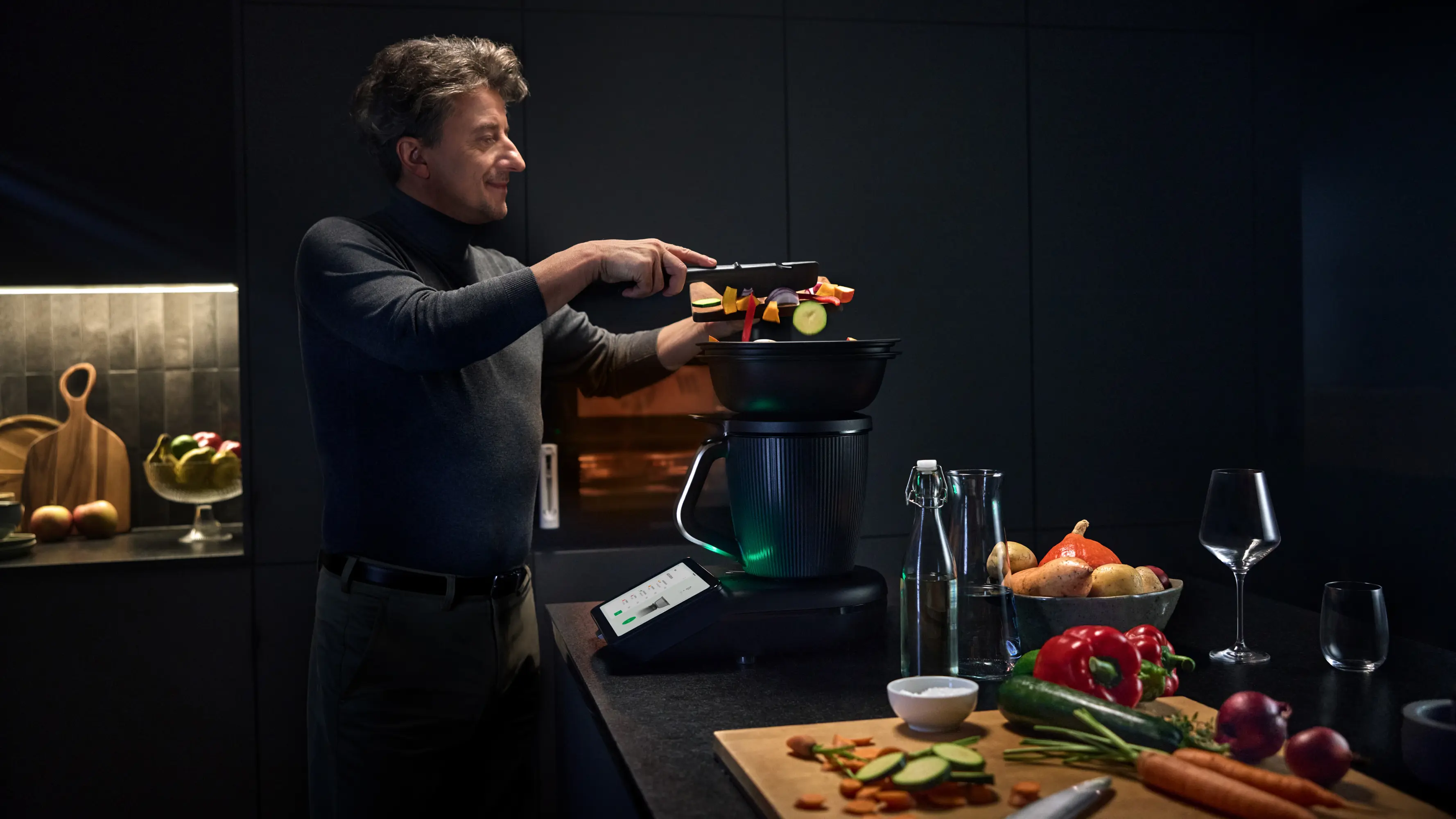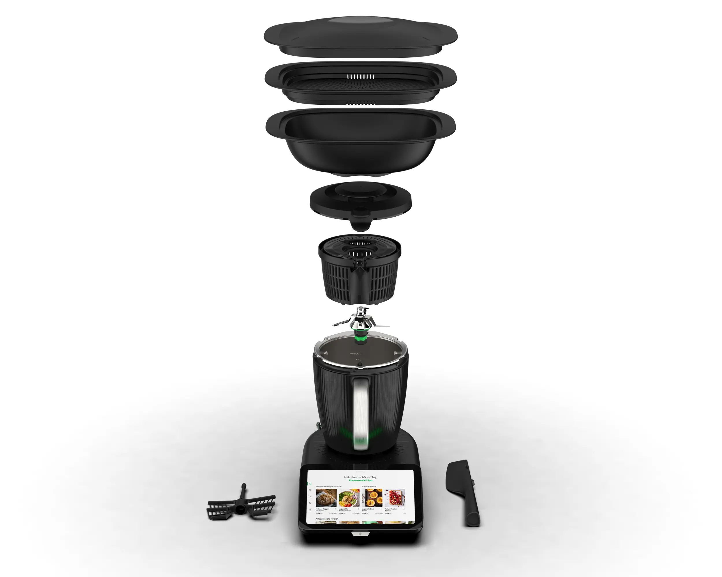 Designed and developed in Wuppertal, the Thermomix® TM7 brings together form and function, with the black base serving as a stage for the principal players: the pleated mixing bowl and 10-inch multi-touch display. The integrated Cookidoo® recipe portal, as part of the Thermomix® ecosystem, offers direct access to over 100,000 carefully developed and verified Thermomix® recipes with Success Guarantee in over 20 languages. Every detail of the Thermomix® TM7 has been designed with a clear goal in mind: to achieve the perfect balance between form, function and safety.