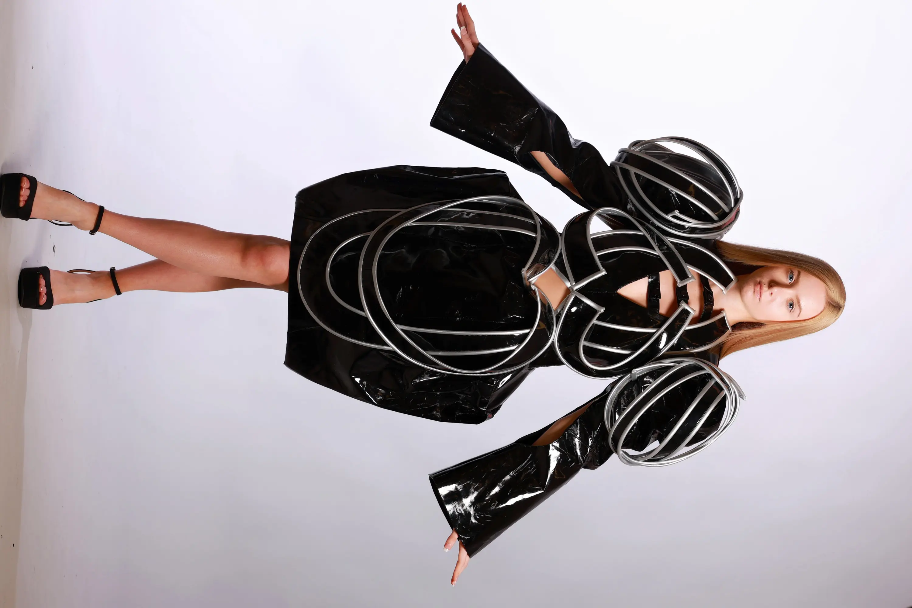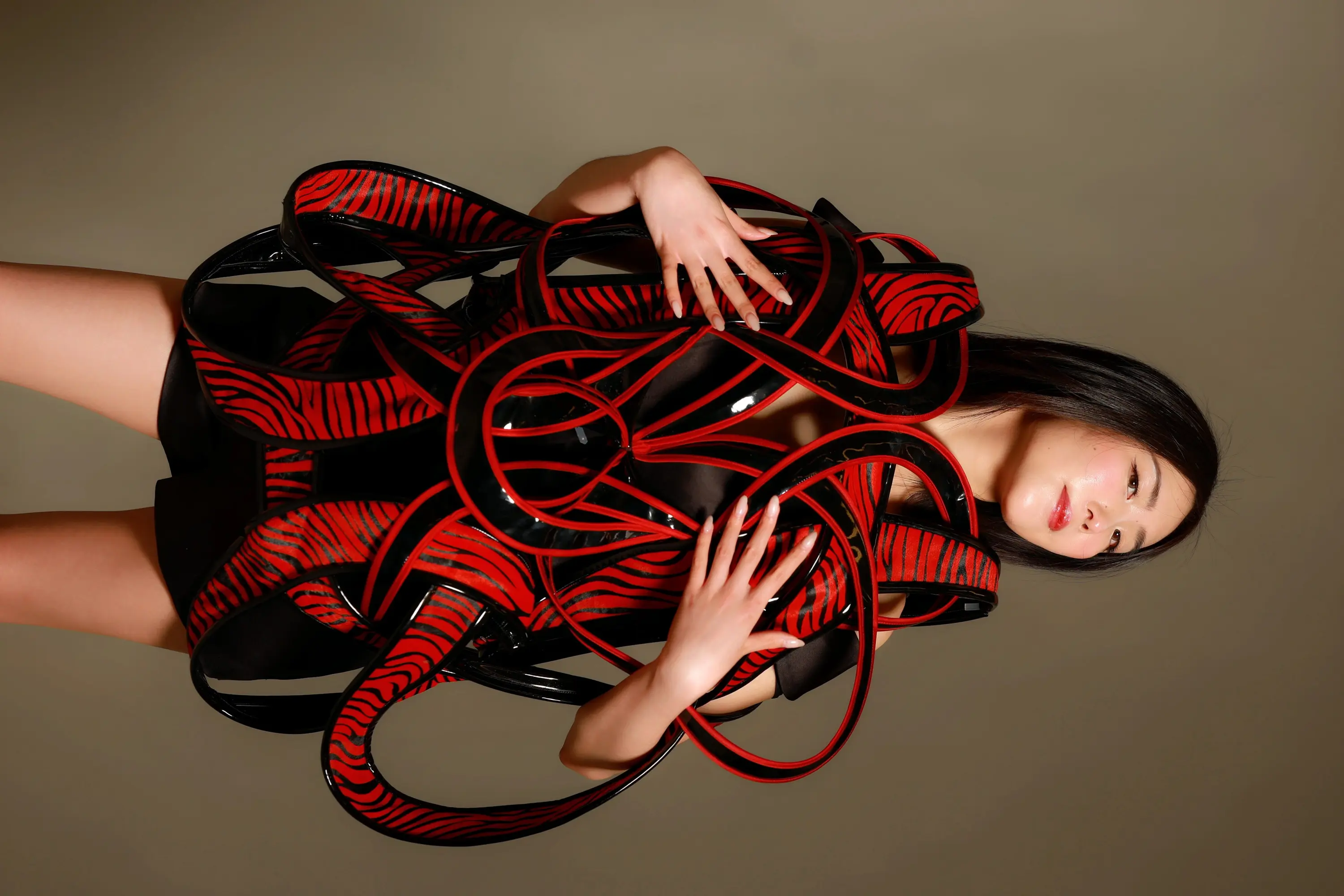 Unveiling the Cosmos is a sculptural fashion collection that reimagines the universe through dynamic wearable forms. Inspired by Hindu philosophies of cosmic cycles and rebirth, the designs utilize high-performance polymers and recursive ring structures to evoke infinite motion. Contrasting red and black tones intensify the emotional resonance, balancing conceptual depth and visual impact.