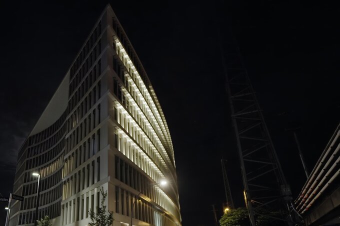 LICHTWIND is a dynamic architectural lighting installation for the Connexion Office building in Hamburg. The installation is 100 % carbon neutral. The movement of the light reflects the current wind movement in real time and poetically refers to the immediate presence of carbon neutral energy through light (sun) and movement (wind). LICHTWIND contributes to a vision of a nocturnal city that remains agile and in the flow of the present, while retaining its distinctive identity. StageLed is the technical partner.