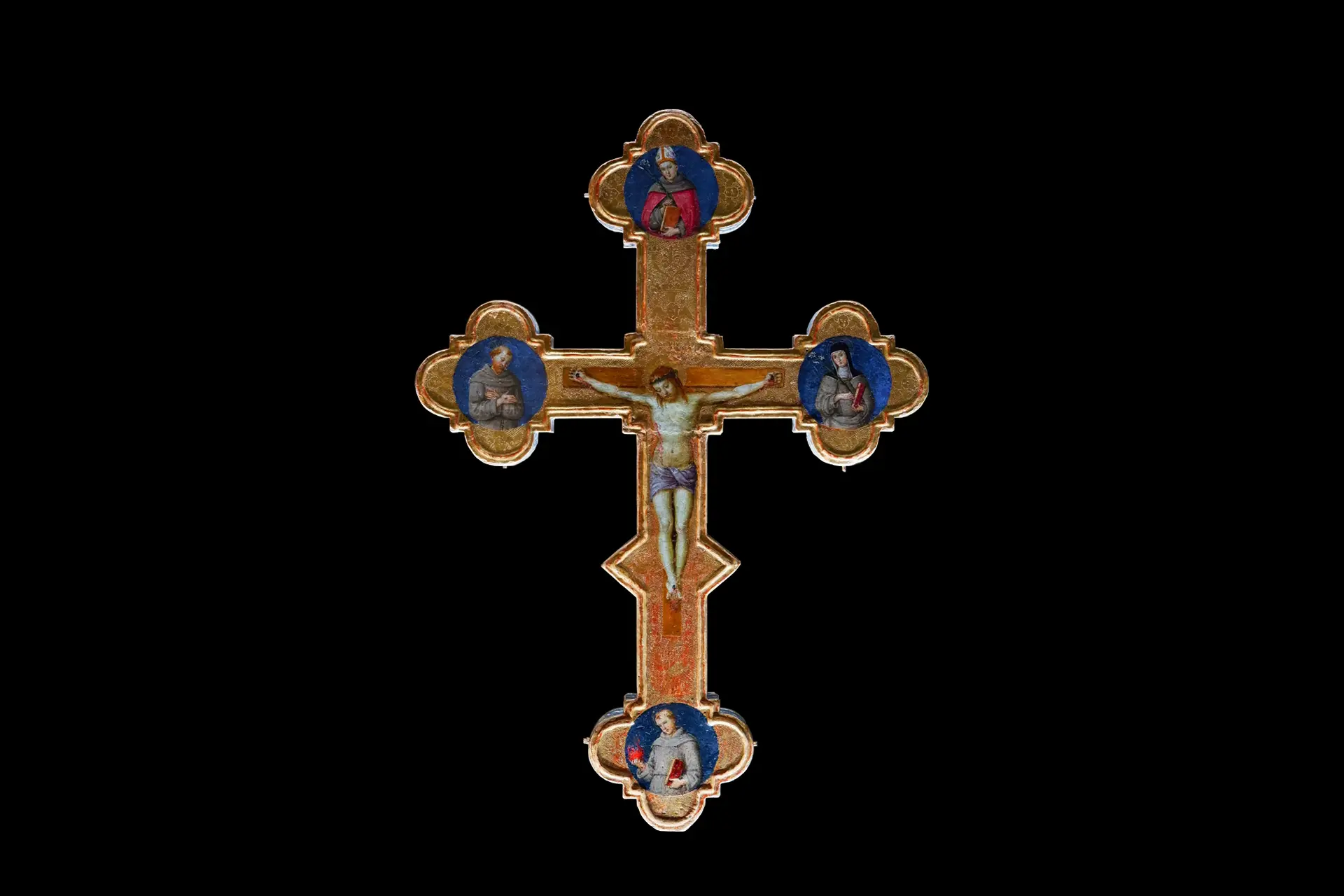Raphael’s Cross was placed in the renovated galleries of the Poldi Pezzoli Museum in Milan. Due to the small dimensions of both the artwork and its display case, a meticulous selection and calibration of the light sources was necessary to enhance the Cross, bringing out details, reliefs, and punchwork that were barely visible in the previous display. Special filters were installed inside the case to distribute the light evenly, highlight the colours of the Cross, and matching the gold tones with those of the surrounding artworks. Additional filters were also used to prevent photobiological damage to such an important artwork.
