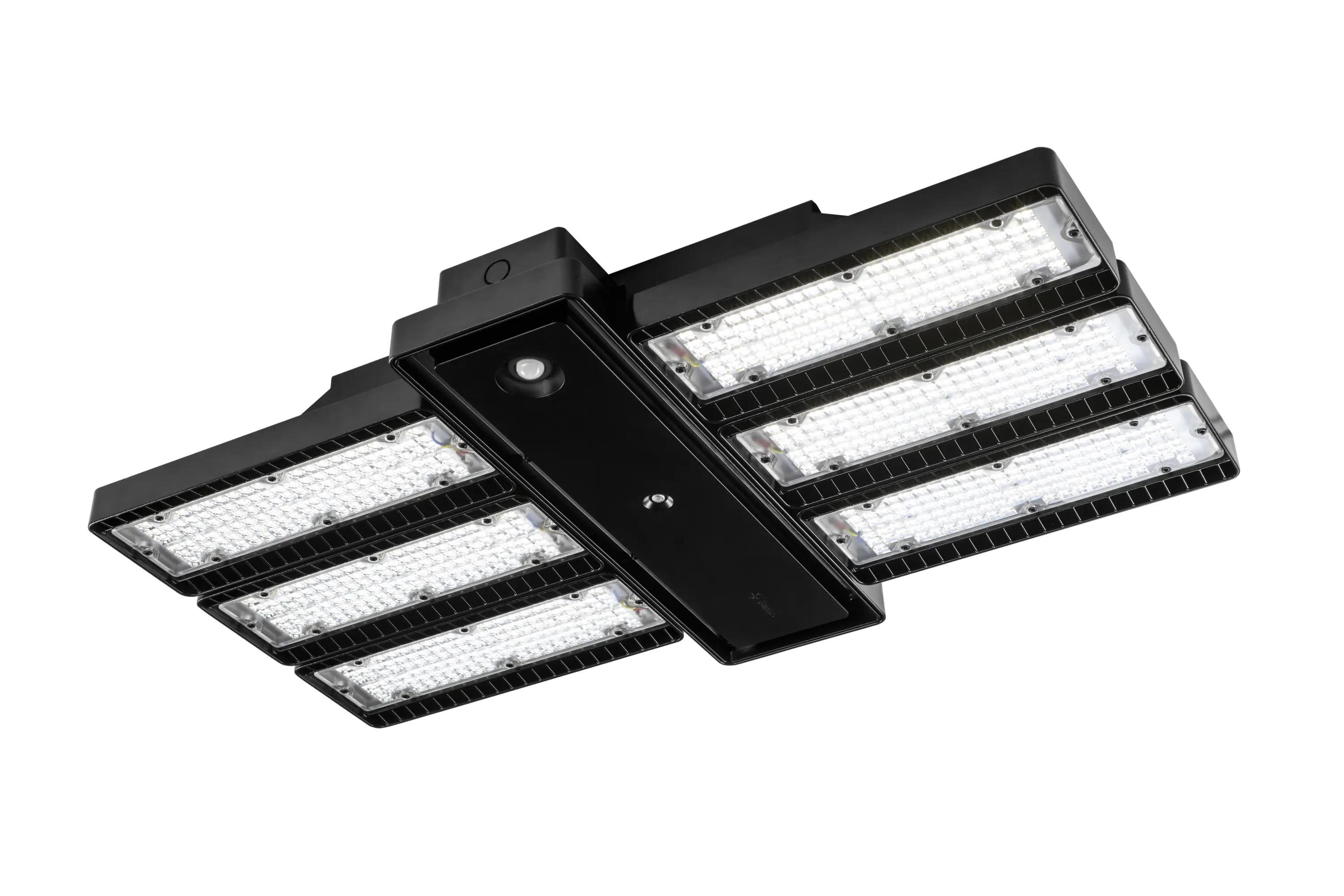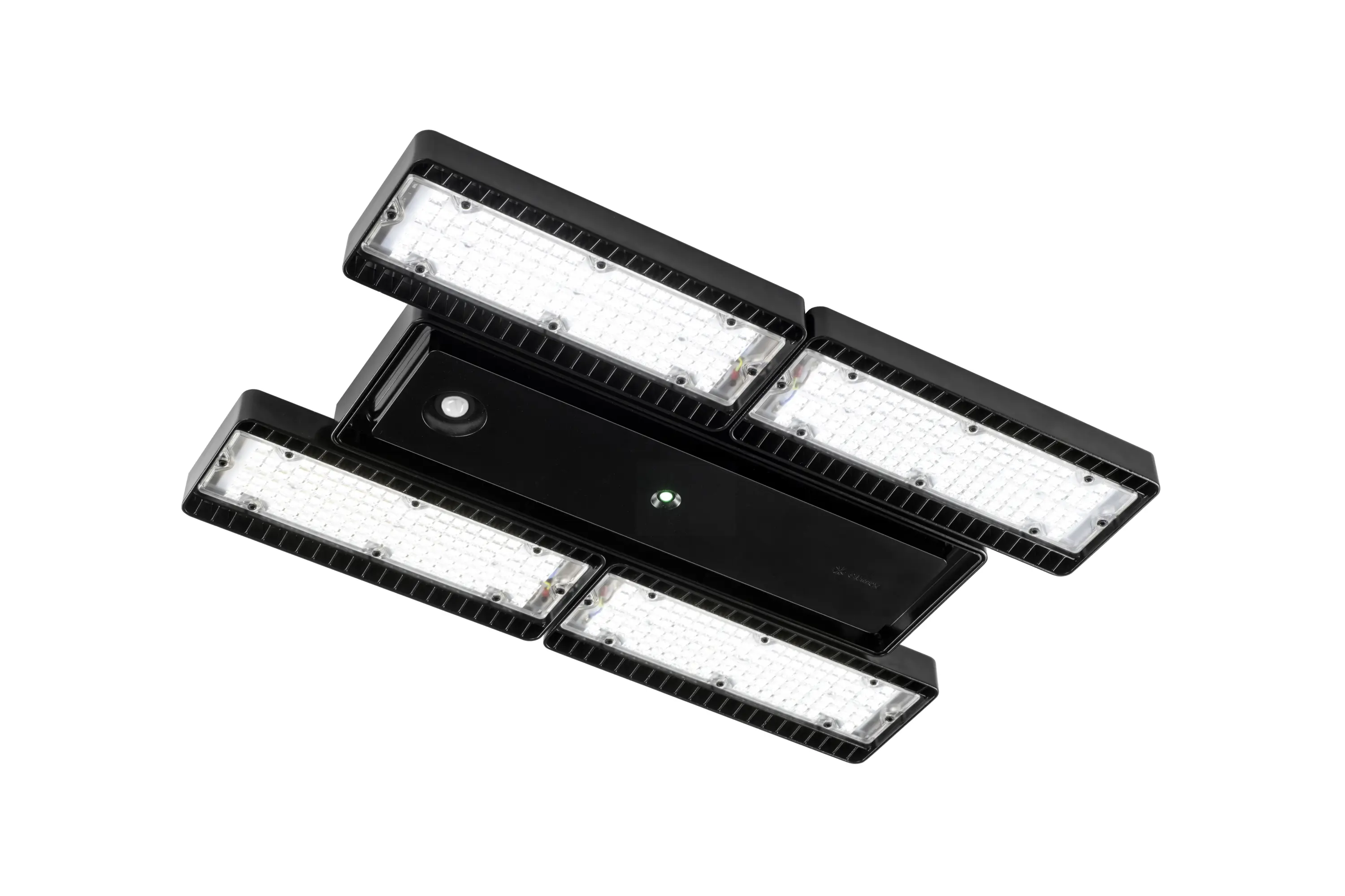 The i65 high bay luminaire offers excellent light quality, easy installation, and sustainability—45% of its housing is made from recycled aluminium. With IP65/IK10 ratings, it operates reliably from -20°C to +50°C and delivers up to 180 lm/W and 70,000 lm. Built-in sensors and wireless control enable energy-efficient operation and monitoring. Emergency versions with lithium batteries are available. Optics: ELB, MB, WB. Mounting options: surface, wire, chain, or trunking.