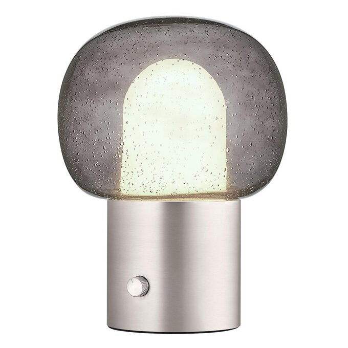 The glass lampshade of the ‘IRIS’ table lamp with its enclosed air bubbles is reminiscent of an underwater world, an impression that is particularly fascinating when the light is switched on and lends rooms a special atmosphere. Three light colours can be selected and dimmed as required using the rotary knob.