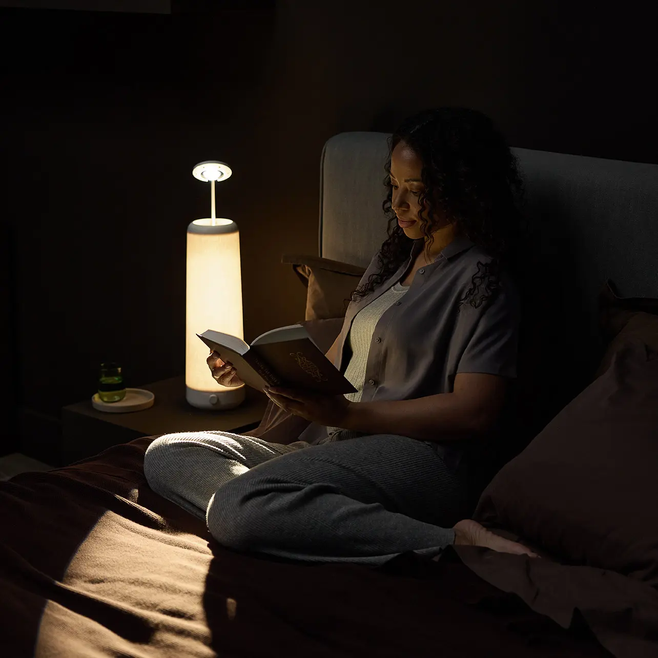 The Nightside NS01 lamp is an innovative re-imagining of the bedside lamp. Its dimmable warm-white LED creates a relaxing and warm ambience at nighttime, but when more light is needed, a press of the top reveals a patented spotlight feature that can be used for bedtime tasks such as reading and diaper changes, all without disturbing anyone else. Because it uses only one LED, the lamp is ultra-efficient and uses only a single Watt of power.