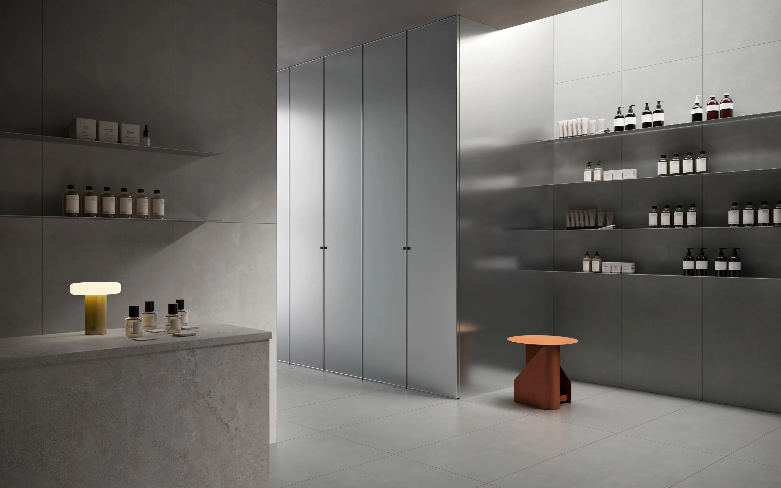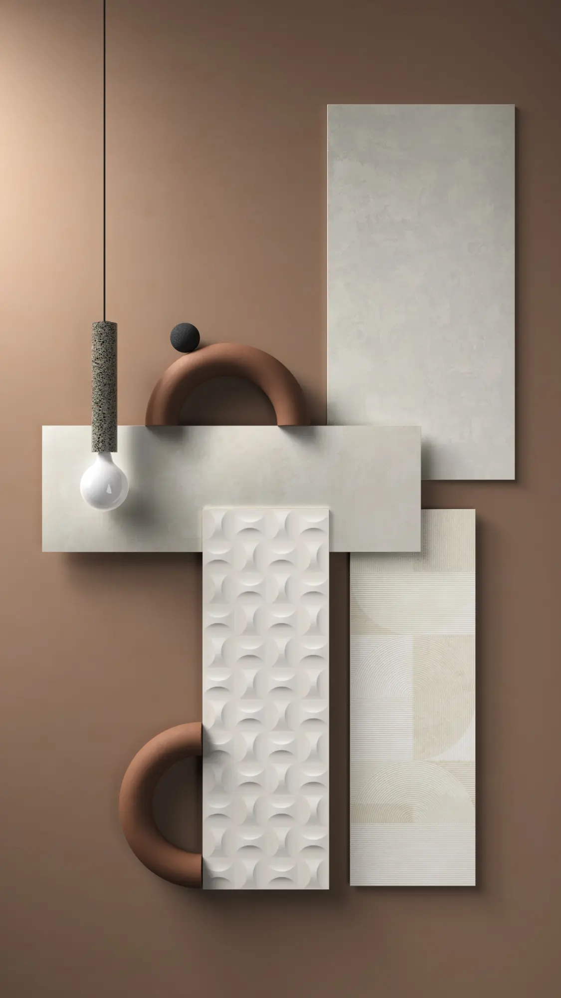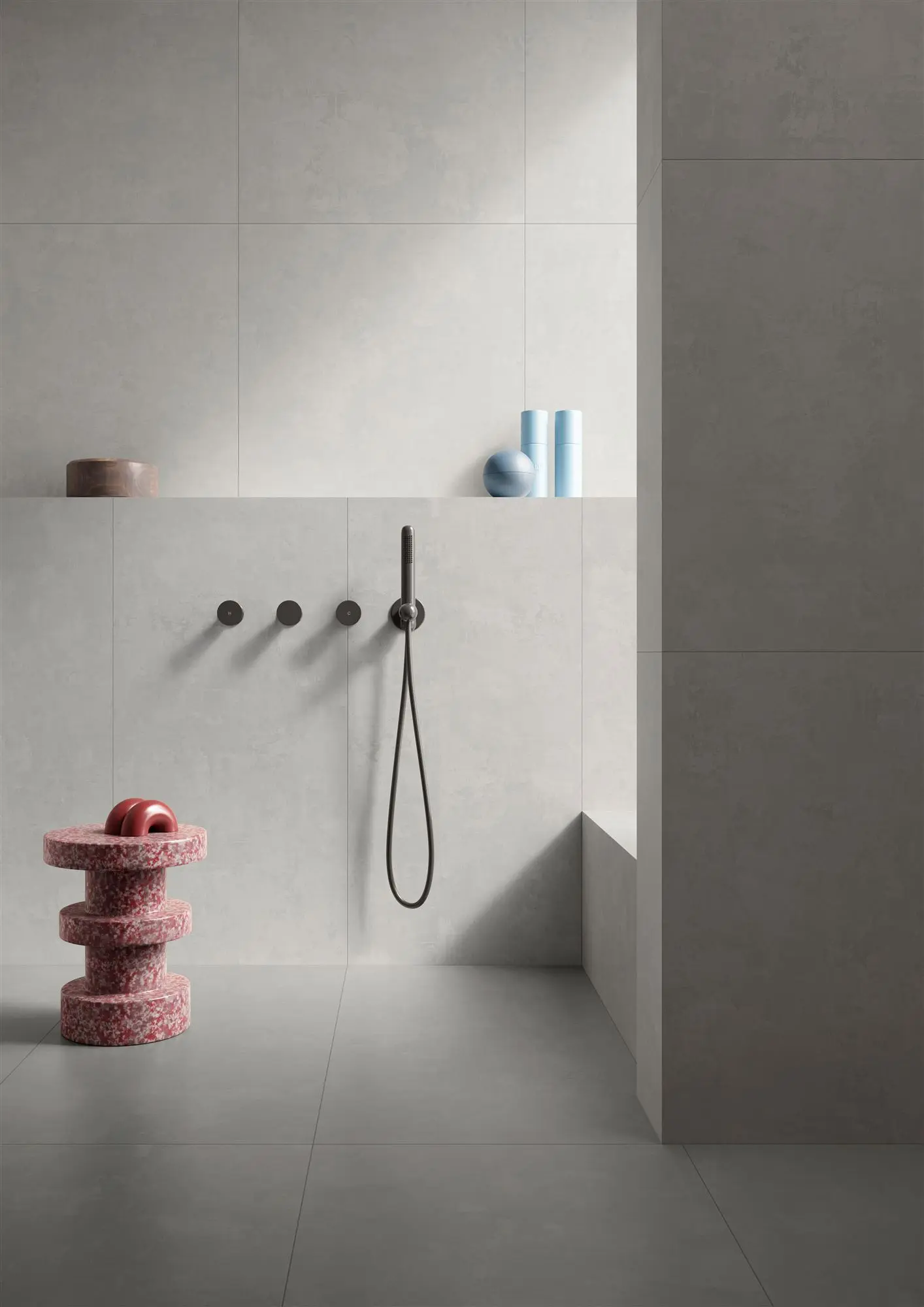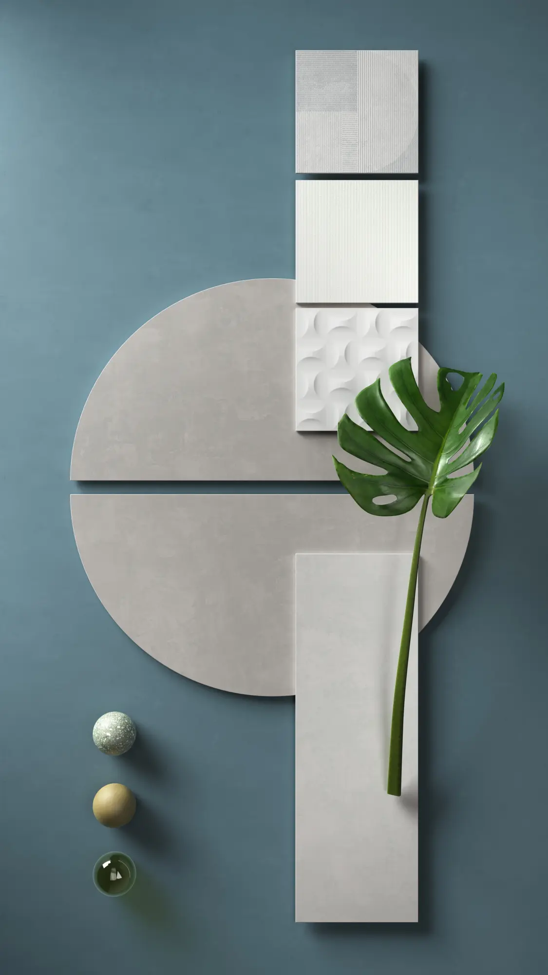 Cementart is a contemporary tile collection reflecting the refined simplicity of concrete. It offers a versatile aesthetic, bringing a modern touch to interiors. The collection features four porcelain base tiles in White, Cream, Silver Grey and Dark Grey, along with four distinct wall tile designs, each available in warm and cold colour options to enable diverse combinations. Decorative options such as 3D Geometric and Rigato relief tiles add depth and rhythm to vertical surfaces. Enhanced by advanced printing technology, the Geometric decor introduces dynamic movement, enriching the spatial character of the interior.