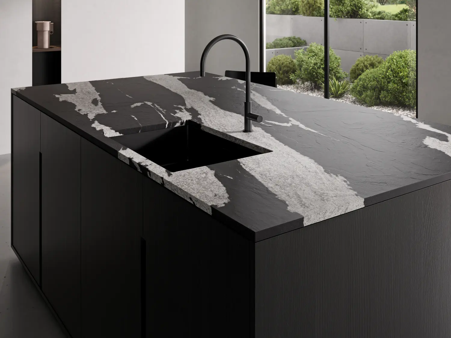 Neolith Victoria is a sintered stone surface that integrates advanced 3D printing technology with a full-body veining design, achieving unprecedented visual realism, durability, and sustainability for kitchen and interior applications. Part of the Neolith Iconic Design collection, this model represents the highest expression of luxury, character, and natural beauty. Inspired by the strength and elegance of an exclusive Brazilian granite, it has been reinterpreted with a new dimension of realism and detail that creates a captivating illusion of layered depth, revealing an authenticity never seen before.
