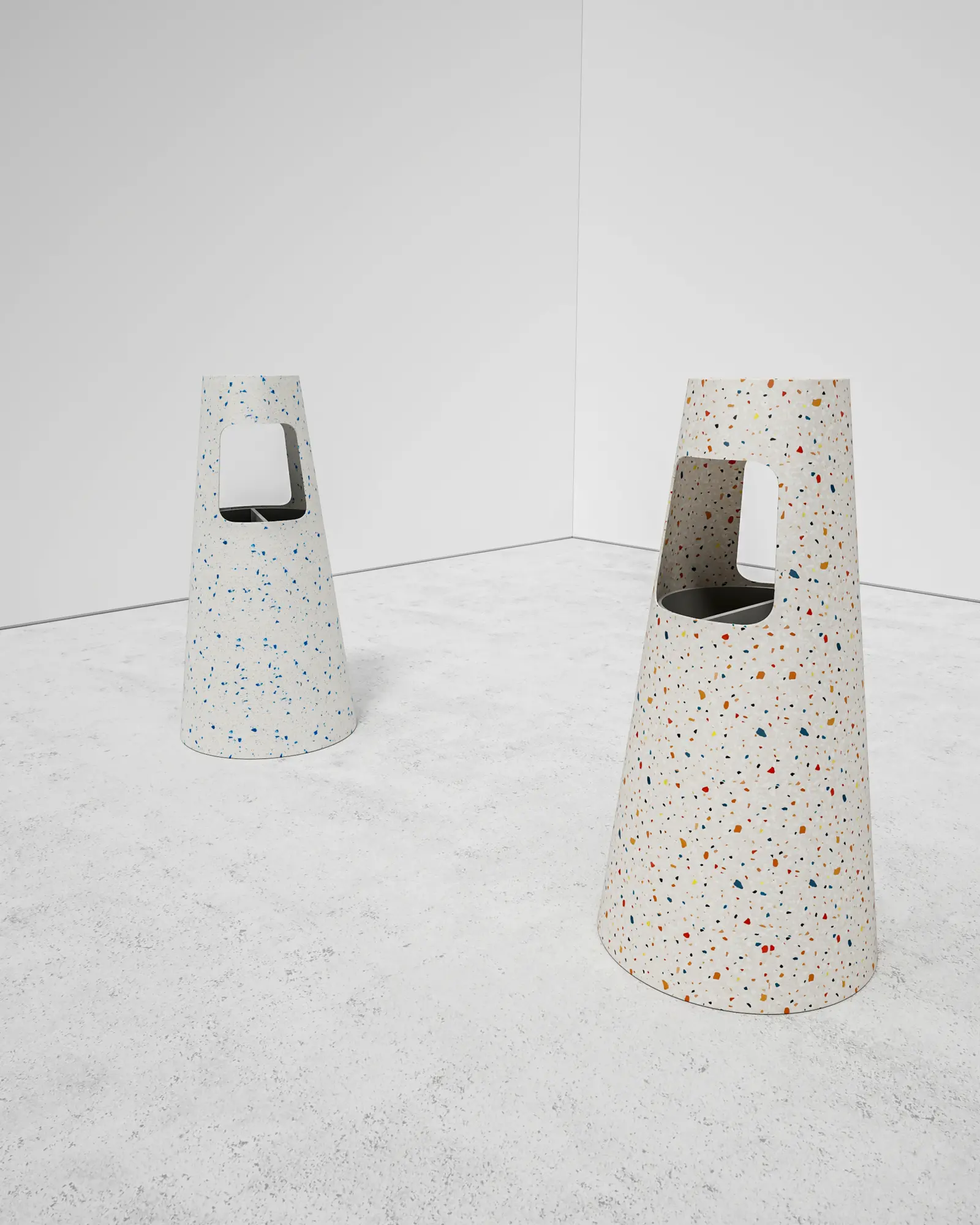Sprinkle Bin redefines discarded materials. Made from recycled plastic, it transforms industrial waste into a sculptural, functional object. Its tapered cone form offers stability and elegance, guiding both waste and attention inward. Durable, recyclable, and repairable, it embodies a closed-loop philosophy—where every end sparks a new beginning. Minimal in form but maximal in impact, Sprinkle Bin is not just a container, but a quiet advocate for conscious, sustainable living.