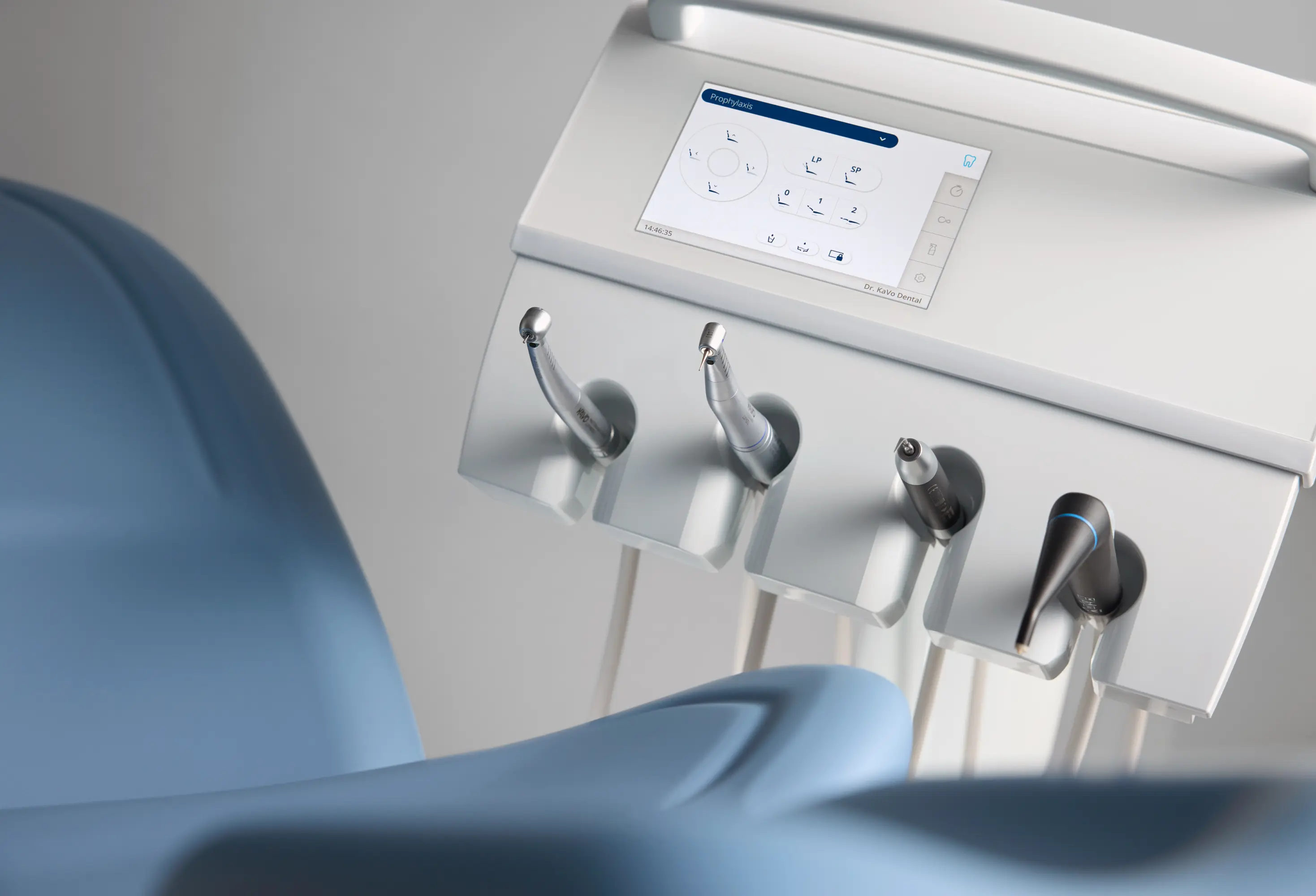 KaVo amiQa - Simply essential. The KaVo amiQa combines timeless design with sophisticated functionality. Its sporty, elegant lines and slim device body blend harmoniously into any treatment environment. The brilliant 7″ touchscreen with intuitive operation makes everyday work noticeably easier. The automated hygiene functions with integrated hygiene centre and hygiene guide ensure reliable cleaning. With generous seat height adjustment and legroom, the KaVo amiQa promotes back-friendly working. A design that is technically impressive and visually inspiring - compact, durable, trustworthy.