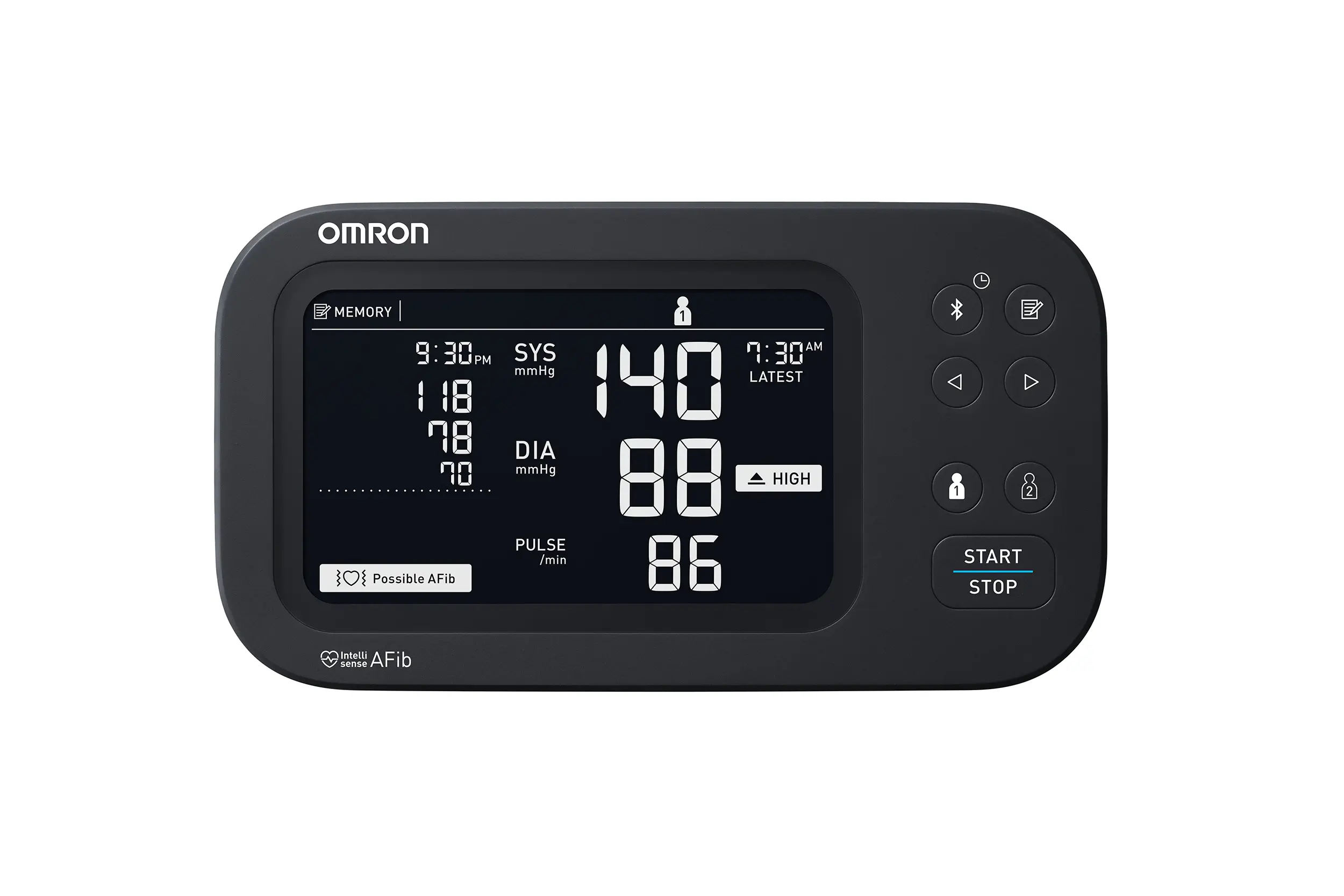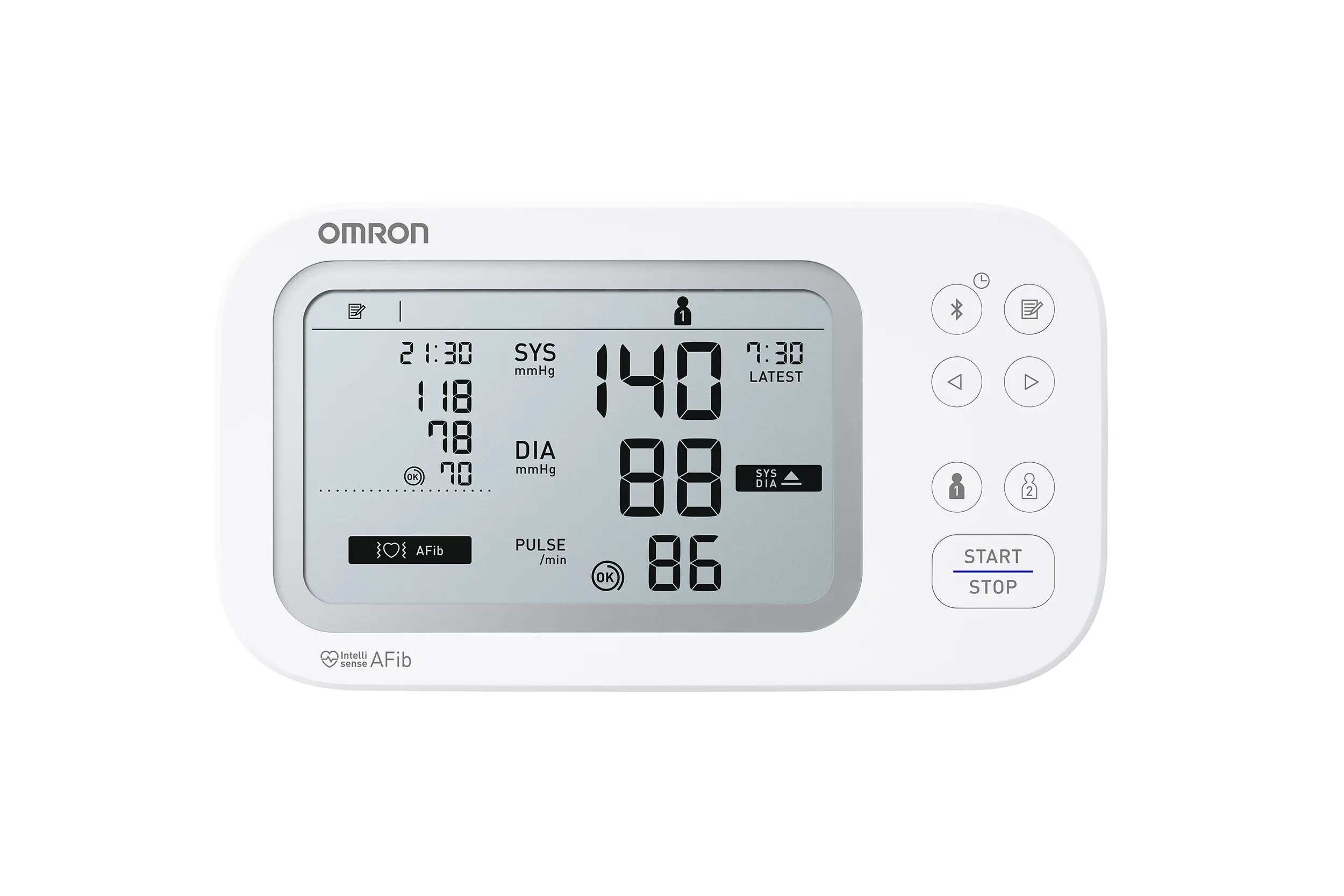 This blood pressure monitor is designed to detect the possibility of atrial fibrillation (AFib), a key indicator of cardiovascular risk. By simply measuring blood pressure, the device can simultaneously identify potential AFib. If AFib is detected, the user is alerted with an easy-to-understand icon on the LCD display.
