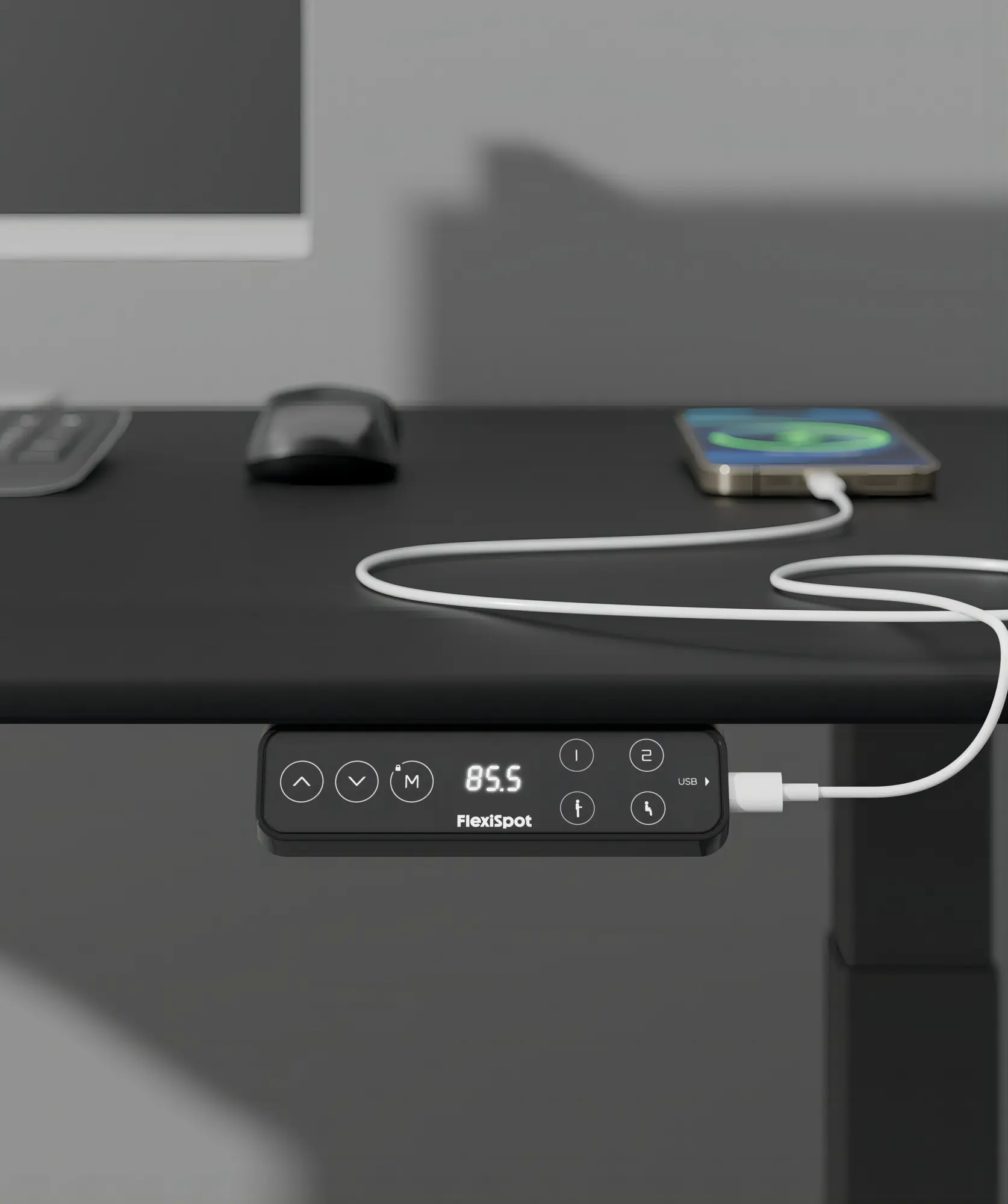 The E7 Flow standing desk creates a workspace defined by reliability, efficiency, and comfort. It redefines office experiences with industrial-grade stability, featuring a reinforced frame and C-shaped legs that provide a 180 kg weight capacity—ideal for heavy multi-monitor setups. Its rapid 50 mm/s lifting speed ensures efficient, safe adjustments, while the magnetic cable tray with a 6-outlet power strip provides integrated under-desk cable management for a clutter-free working environment.