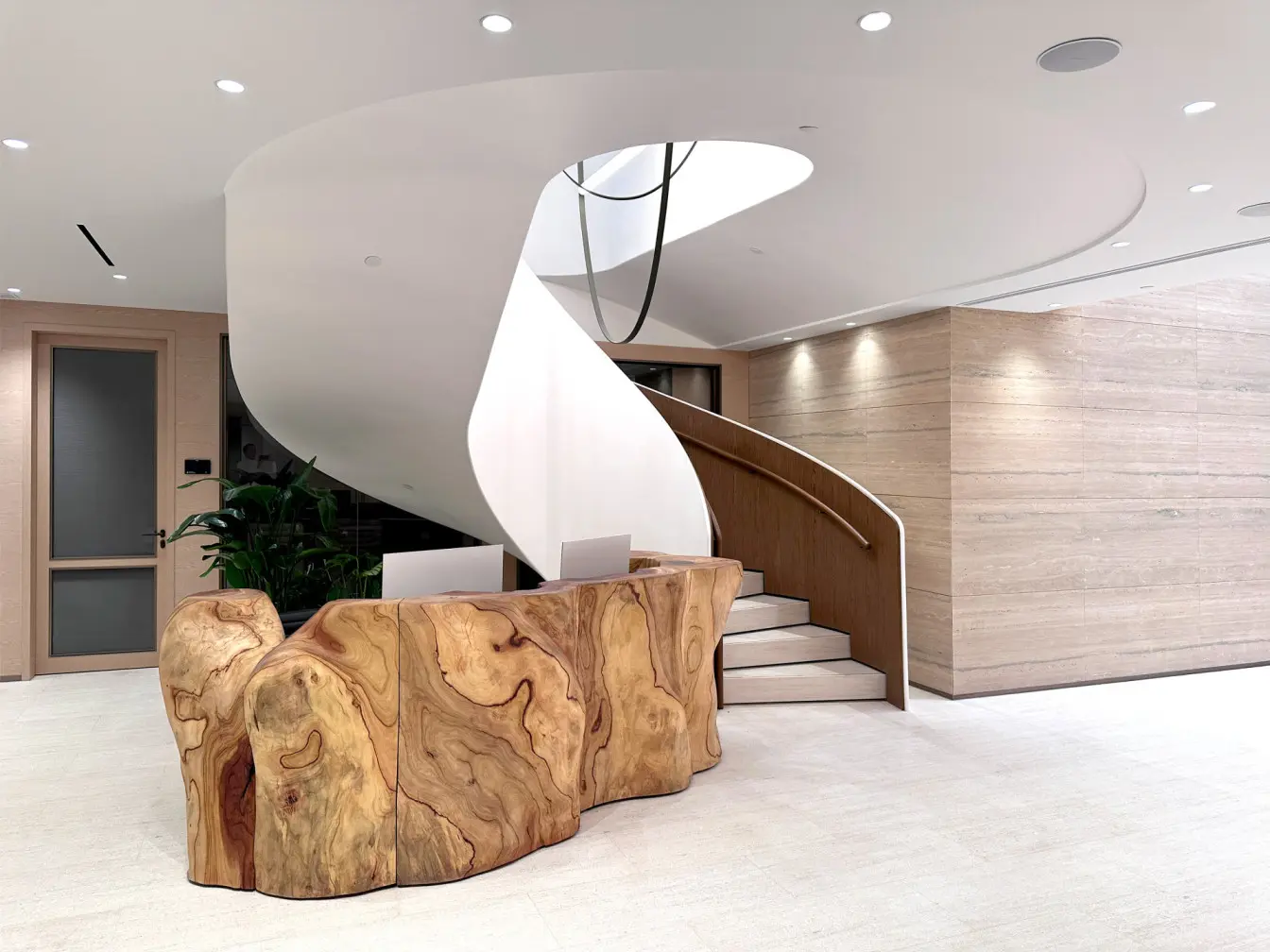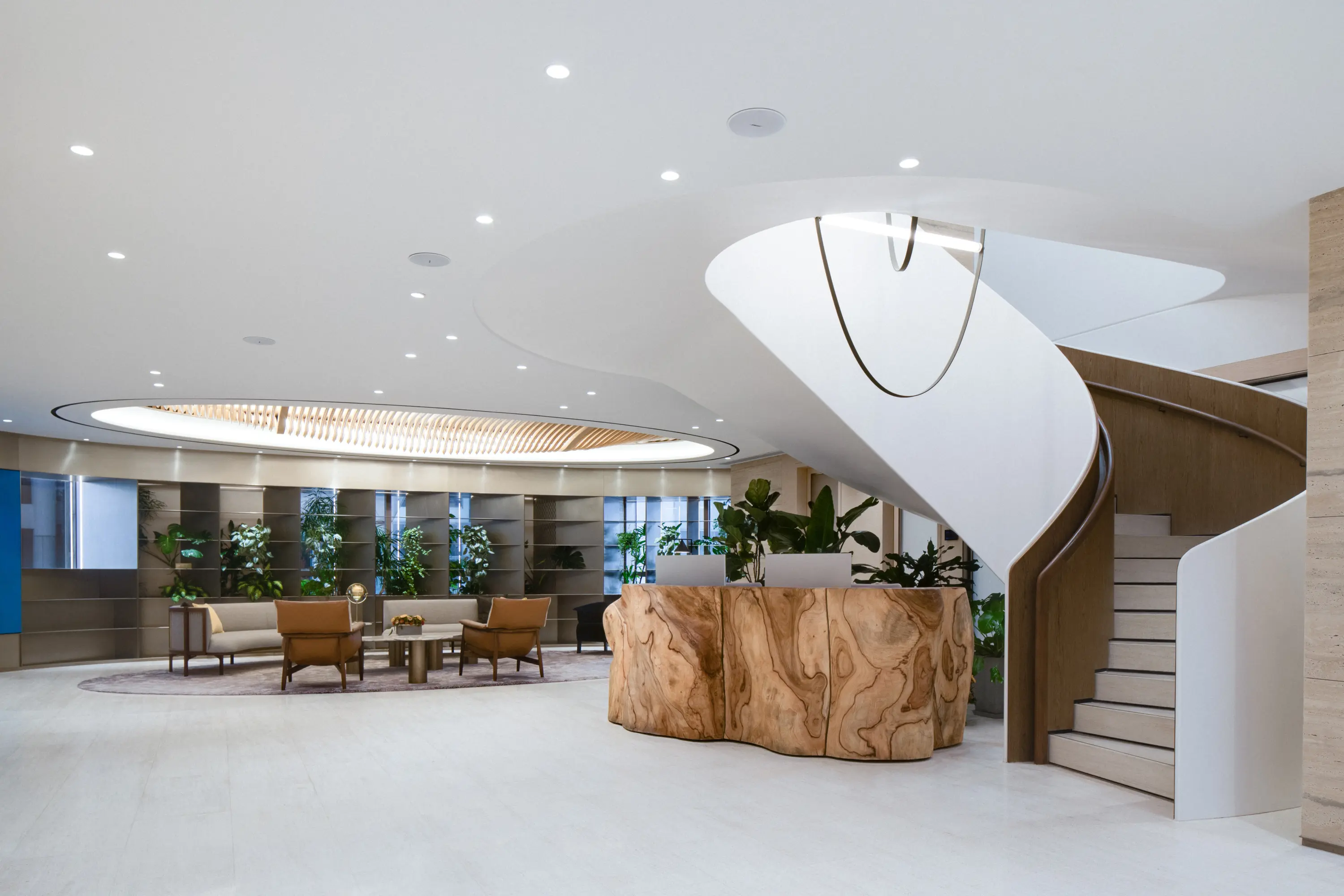 Co-designed by the Oval Partnership and HK Timberbank, “The Scents and the Soil” is a sculptural concierge counter crafted from salvaged wood of a 400-year-old camphor tree. Upcycled with eco-friendly methods, it minimises waste and emissions, embodying circular design. Using 3D scanning and Rhino software, six asymmetrically hand-milled trunk sections reveal heartwood patterns, evoking a lady’s dancing hemline. Blending storytelling and function, it emits a calming scent and draws from the proverb “Distant fragrance announces the noble.” Shortlisted for the FRAME Awards 2024 “Furniture of the Year,” it redefines sustainable art and design.