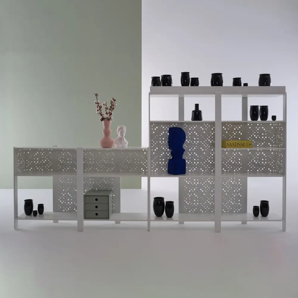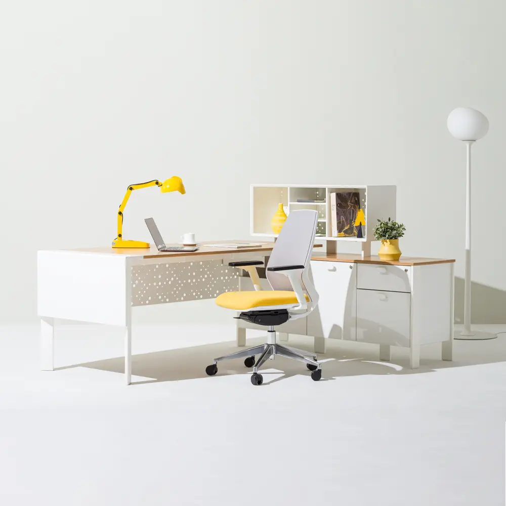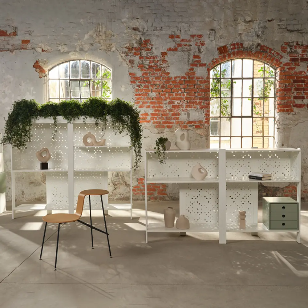 Threshold is a desk and storage solution designed as a workplace. Its self-standing desk and storage units form an open, flexible system that is easy to create, replace, and reconfigure without tools, while also addressing the challenge of under-cabinet cleaning. Designed as self-contained elements, the units allow maximum light into the work area and ensure optimal air circulation. The concept redefines the workplace, offering a space where people can create their own environments with translucent, easy-to-build, and easy-to-clean units.