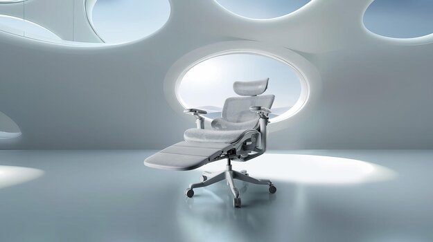 UE Flow 360 provides a groundbreaking ergonomic chair solution through three innovative technologies: a) The follow-up supporting structure features an independent lumbar support that dynamically adjusts in a concentric manner following the user's waist movement to fit the human physiological curve perfectly. b) The trifold magic footrest gives the user's legs full support when he/she sits in different positions. c) The magic armrest enables multidimensional adjustment for enhanced flexibility and comfort, effectively and comprehensively supporting the user's arm in diverse scenarios.