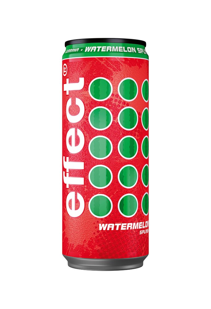 effect® has established itself as a high-selling brand in the energy drinks segment. In order to be able to react to current trends in the FMCG market, the effect® range is regularly expanded to include limited editions. The effect® Watermelon Splash variety has recently been developed for this purpose. The design concept reflects the flavour profile of the variety in the illustration style and colour scheme. The fruity, fresh taste of effect® Watermelon Splash is represented by an intense red background. The dots of the effect® logo reflect the typical green-striped structure of the watermelon peel.