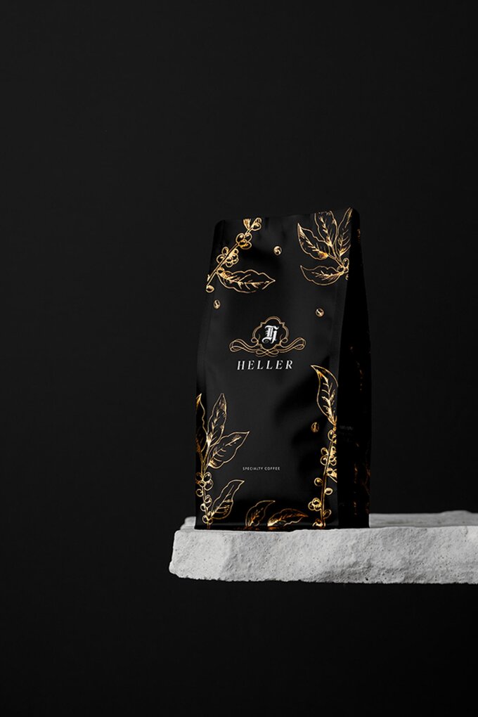 The packaging for the fair trade brand ‘HELLER Kaffee’ combines premium organic quality with sustainability. The packaging, made from recyclable mono-material, features an elegant black design that beautifully emphasises the fine golden lines of the illustration and makes the product unmistakable in retail.