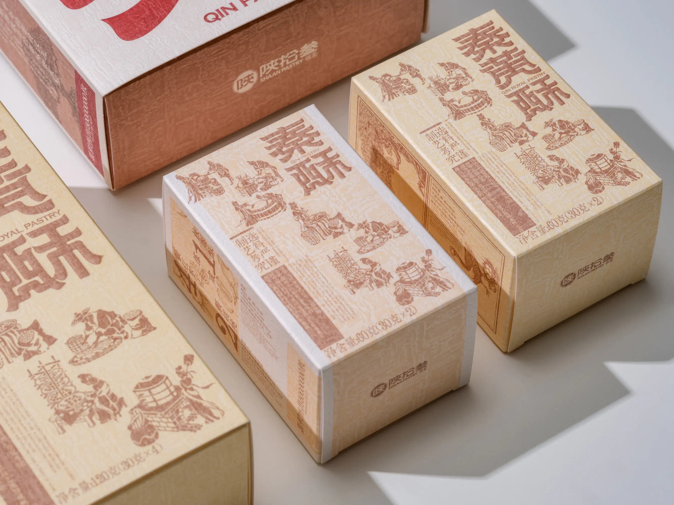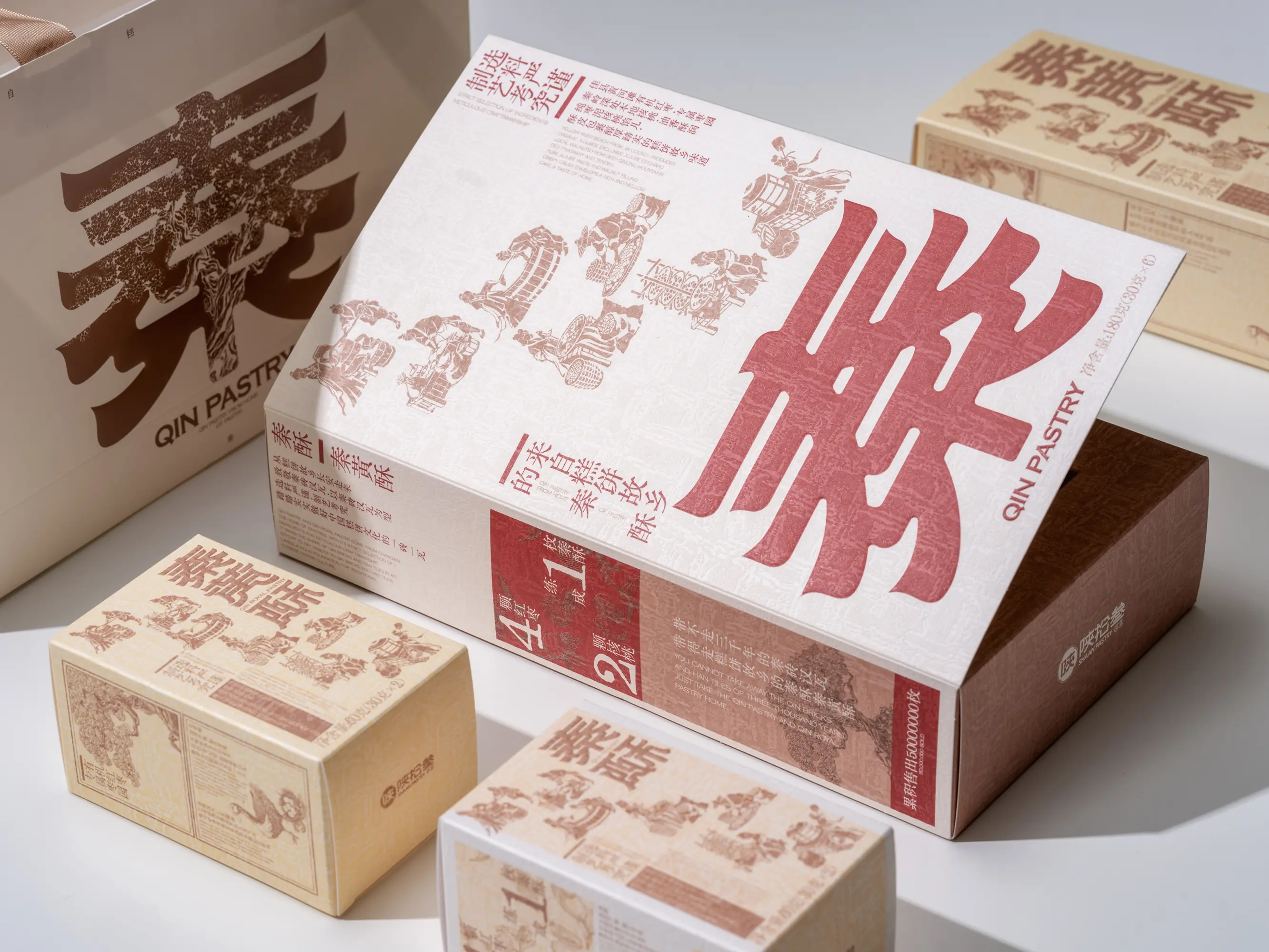 The Qin Pastry Gift packaging uses a restrained design that pays tribute to the product’s cultural heritage through embossing, presenting the pastry’s character in a simple and subtle way that lets the quality speak for itself. The Shaan Pastry Qin Pastry Gift series aims to convey the Shaan Pastry brand philosophy through the packaging’s elegant character and accompanying text, while also sharing the deep historical heritage of Xi’an, the ancient capital, and the rich tradition behind Qin Pastry with consumers.