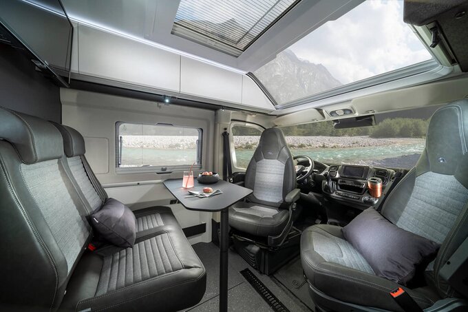 The panel van offers a cleverly thought-out space concept with a panoramic roof window and flexible interior solutions that convey a spacious feeling of living. The ‘Adria Twin’ combines an elegant exterior design with a functional, modern and high-quality interior.