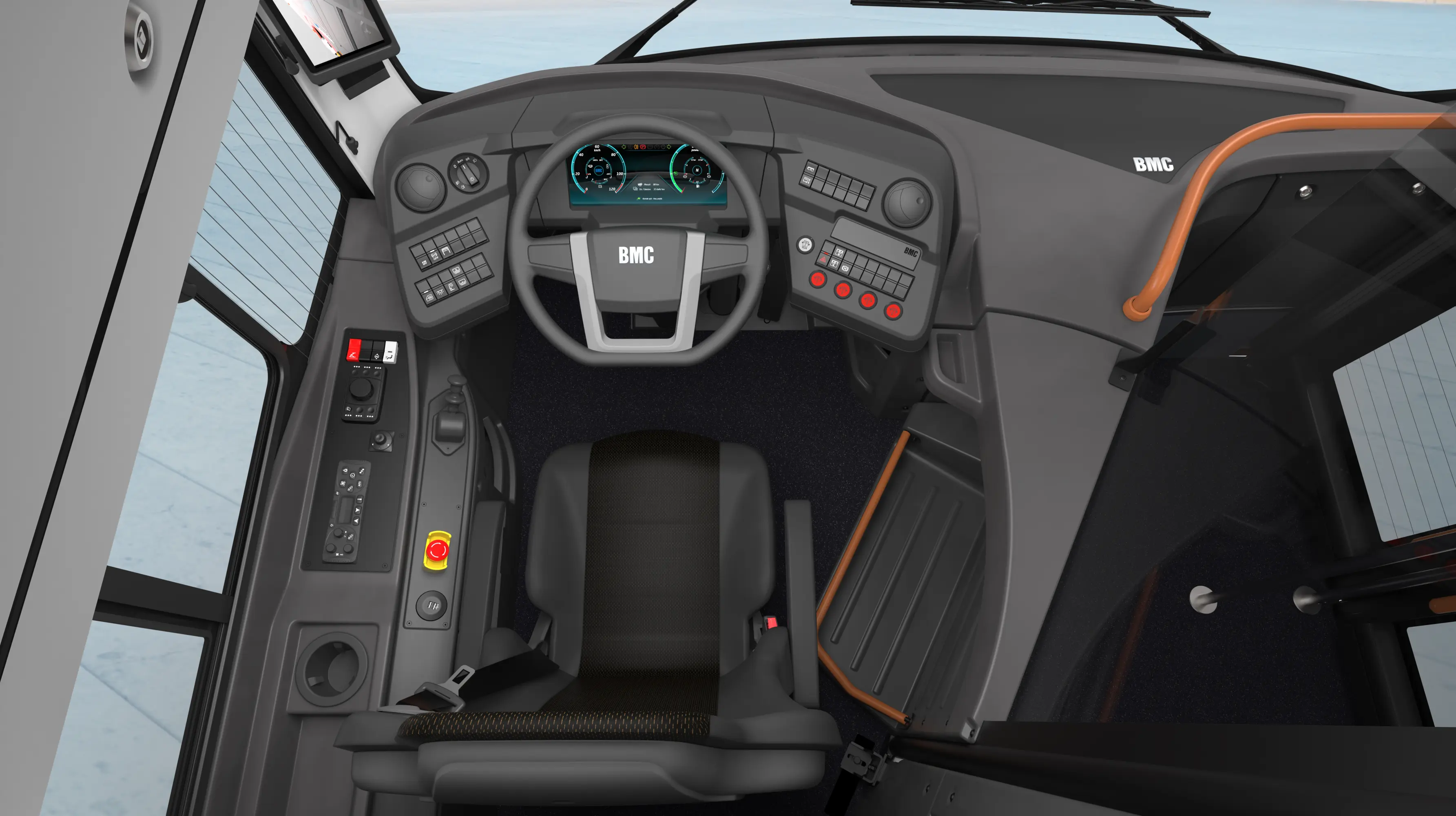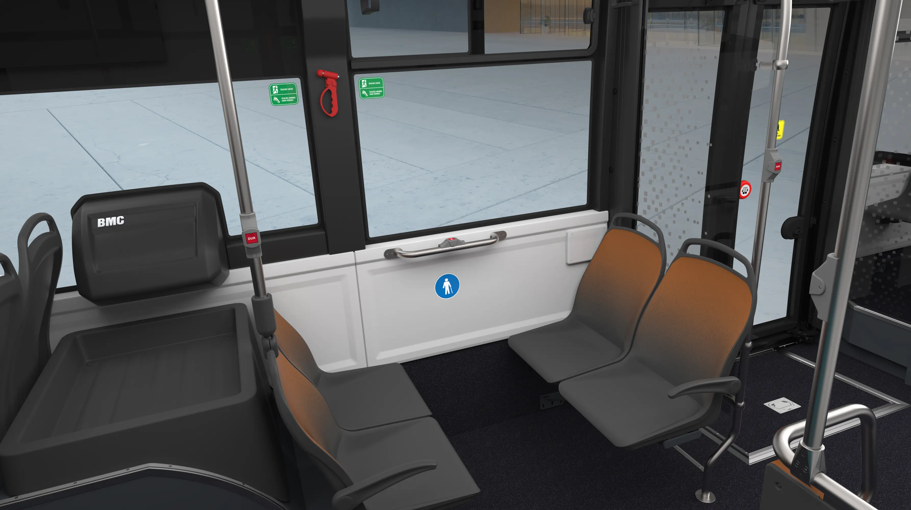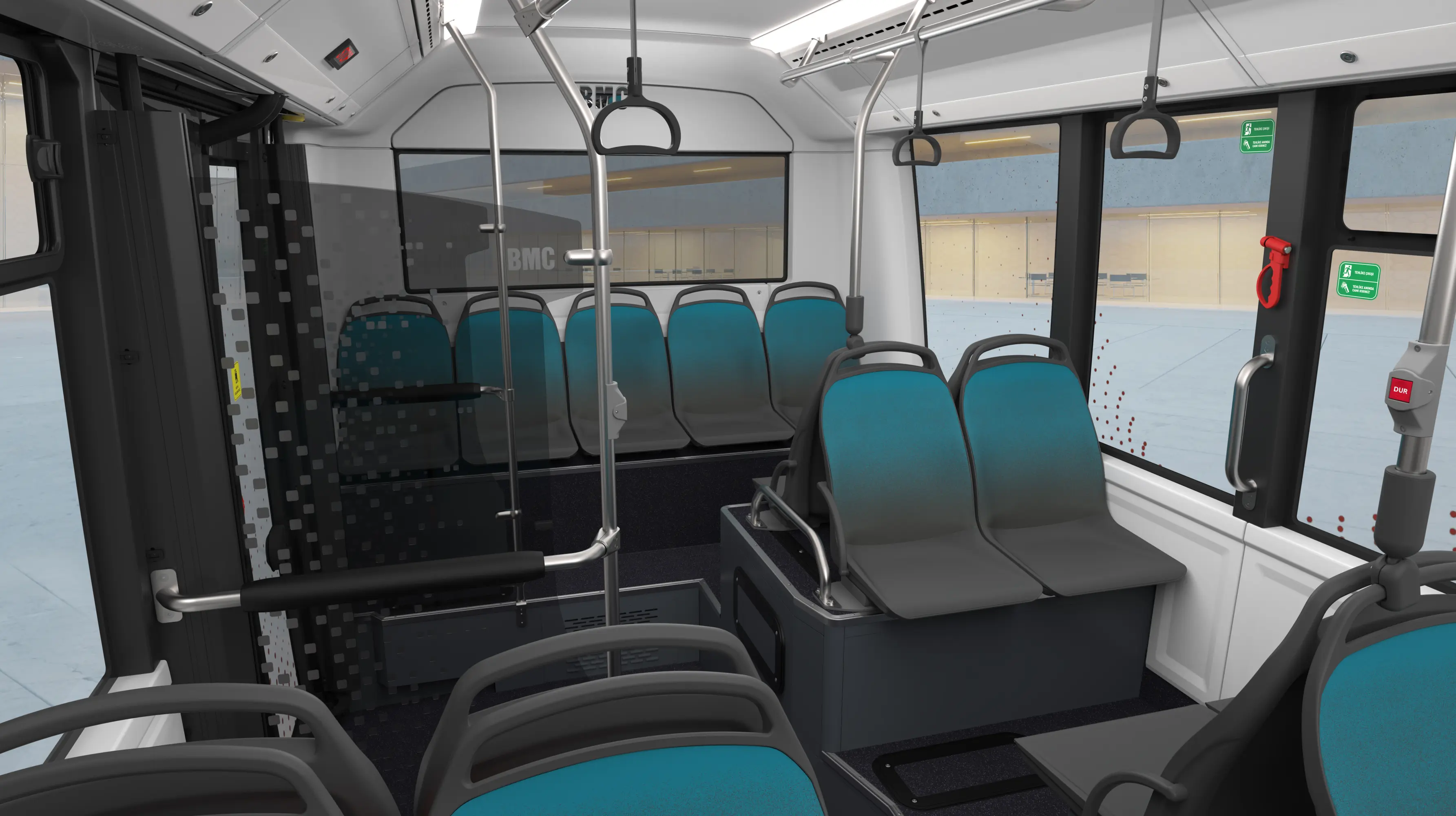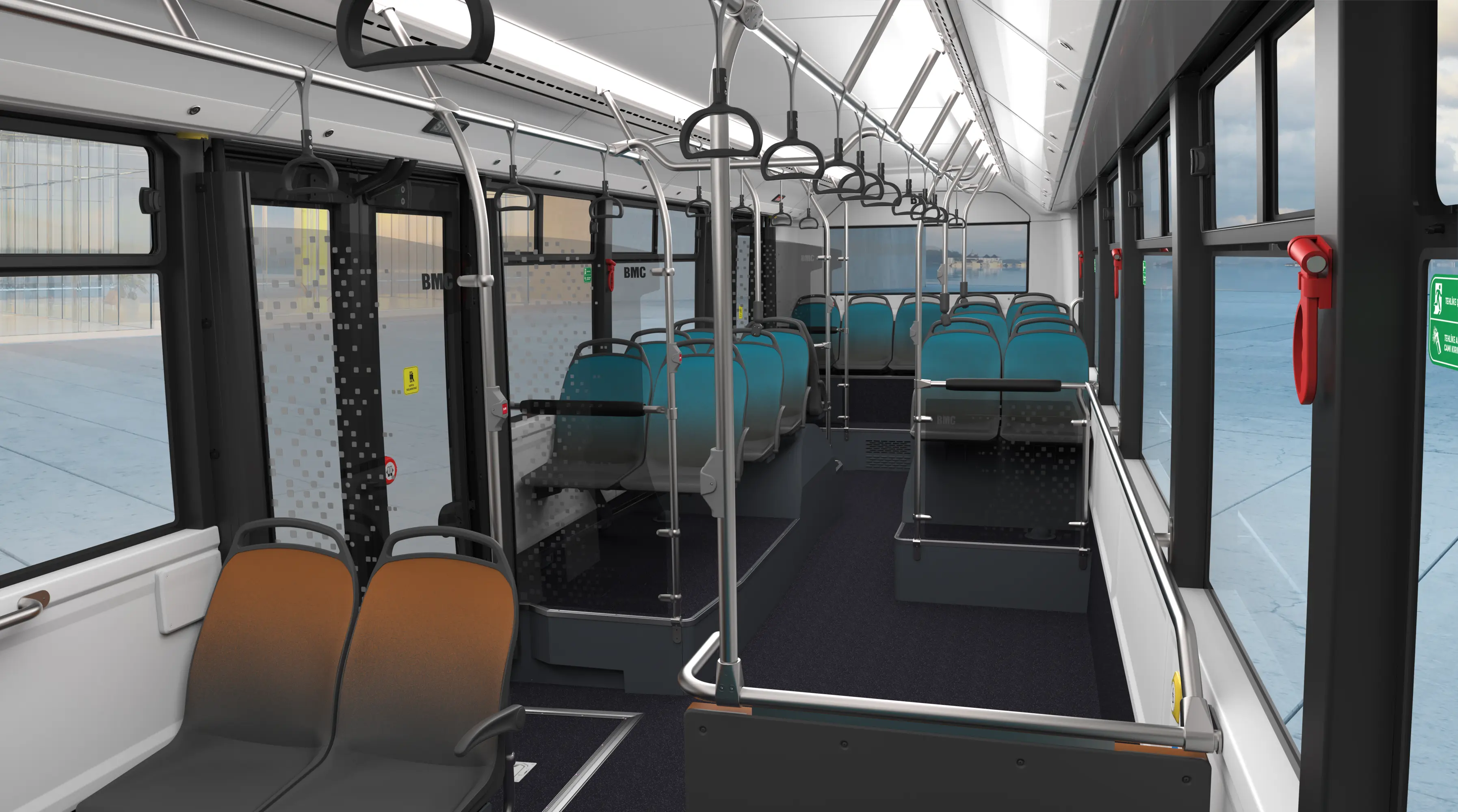 The 12 m Procity EV with a capacity of 31 passengers, with a focus on quality design and functional trim, offers a comfortable, safe and enjoyable journey for the driver and passengers. The driver's area has been designed with a balance of aesthetics and functionality as required the VDV 234 standard. Interior components are positioned for easy access and intuitive use; eye-level control panels and storage areas are optimised for maximum efficiency. Sustainability is supported by recyclable plastic covers instead of wood, while specially designed seat fabrics and CMF selections aim to provide passengers with a calm, high-quality atmosphere.