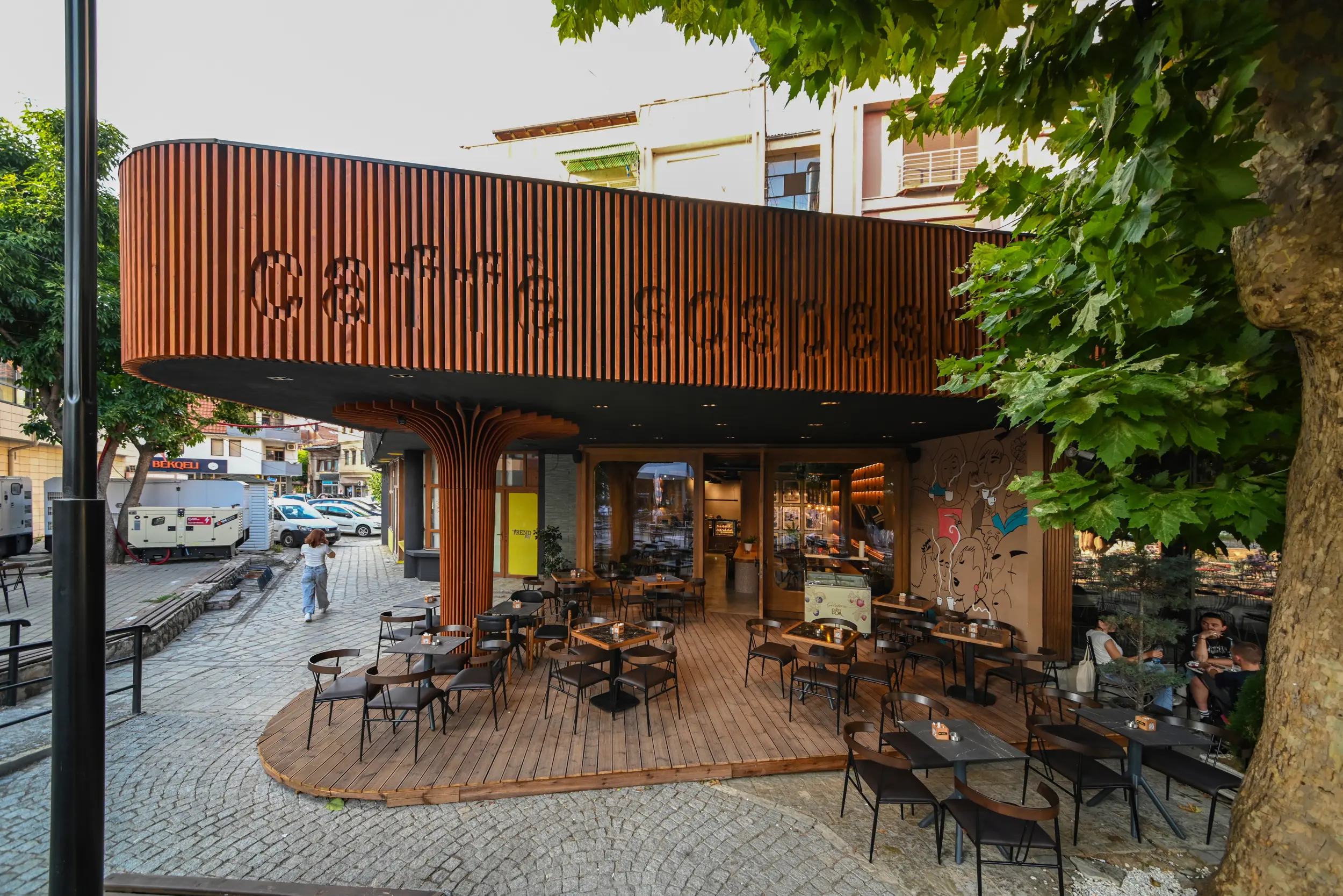 Located in the heart of Prizren, Sospeso stands out among many cafés with a concept rooted in coffee culture. Its name reflects the Italian tradition of "Caffè Sospeso," where a coffee is prepaid for someone in need. Though compact, the space offers a rich sensory experience through coffee aromas and artistic interior touches. Raw materials like microcement on floors, walls, and ceilings add warmth and texture, while mosaic details and an exposed Avramenko ceiling introduce vibrancy and openness. Lighting and MDF cladding tie the design together with balance and consistency.