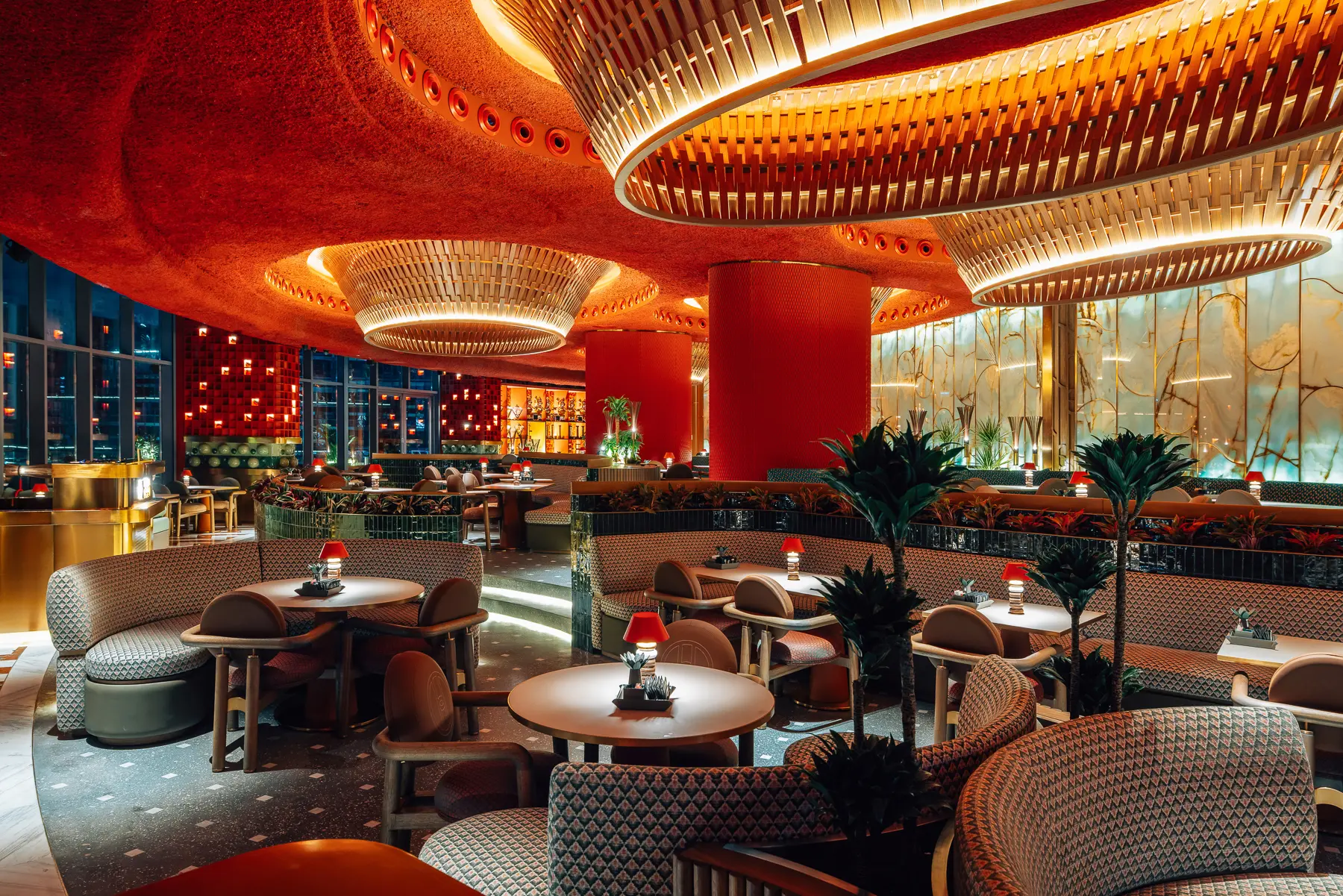 Pinnacle Interiors proudly reveals the one-of-a-kind newly transformed HuQQa Restaurant — a striking fusion of Turkish heritage and modern sophistication. Located in the heart of Dubai Mall, the space features sculptural decorative natural wooden ceiling nests, immersive digital screens, luxe material transitions, and bespoke joinery. With panoramic views, HuQQa sets a new benchmark for experiential high-end dining, showcasing hospitality modernity, excellence, and innovation in the UAE.