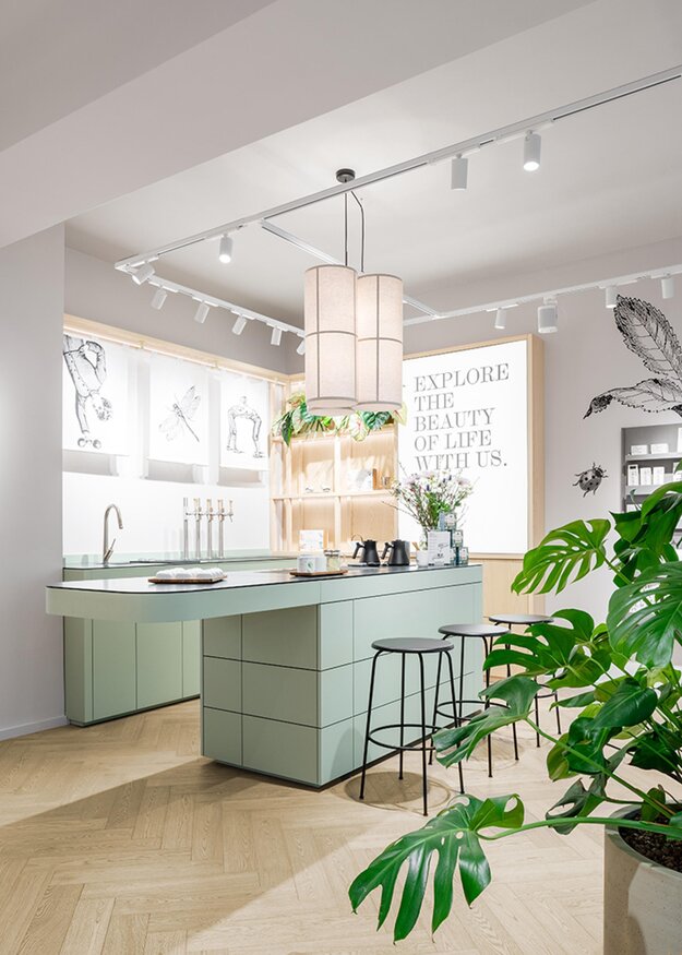 The “PAPER & TEA STORE, BERLIN” is a retail and experience space that invites you to linger and exchange knowledge. The clearly structured and bright interior design, inspired by Japanese minimalism, perfectly reflects the demand for calm and harmony and makes the store a place where tea can be experienced with all the senses.