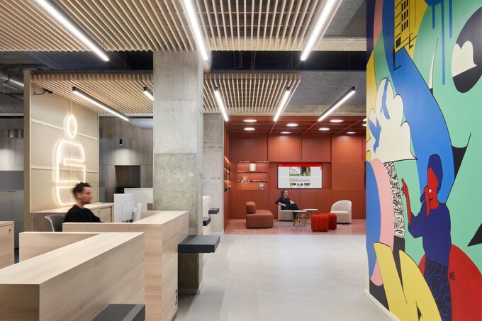 The project demonstrates an innovative blend of corporate identity and local adaptation through a flexible, modular concept. Three key modules – a hand-painted wall mural, a central reception desk, and a "Sparkasse Kiosk" – create a contemporary appearance with high brand recognition. Their design emphasizes approachability and customer orientation, while their modularity ensures adaptability to various branch locations and optimal functionality.