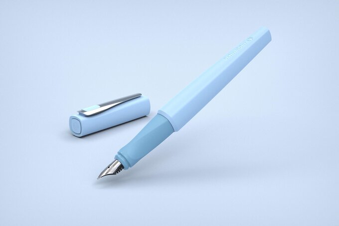 Writing with ink stands for decelerated, personal expression. Tomo is a fountain pen with cartridges that is primarily aimed at pupils and students. Inspired by the Zen philosophy, its design is devoted to minimalism and functionality. The end of the cap emphasises the rounded square as a cross-section, where the Schneider image mark finds its appropriate place. Towards the back, the cap merges seamlessly into the barrel, while the cross-section tapers, lending a sense of calm and dynamism in equal measure. Thanks to its clever design, the metal clip appears to hover and complements the slim silhouette of this sustainable fountain pen.