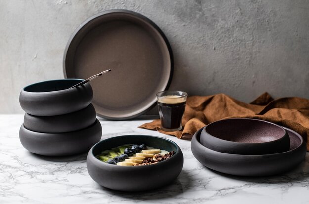 The Celesta tableware collection blends timeless elegance with artisanal craftsmanship. Each handcrafted stoneware piece features a sleek concave shape and striking black exterior, uniquely glazed to reflect the artisan's dedication. Combining traditional methods with modern aesthetics, Celesta offers beauty and functionality. From conceptualization to final detailing, every step is executed with precision. The thoughtfully designed borders frame each dish, enhancing food presentation and elevating the dining experience. Celesta invites users to appreciate the tactile and visual harmony in each piece.
