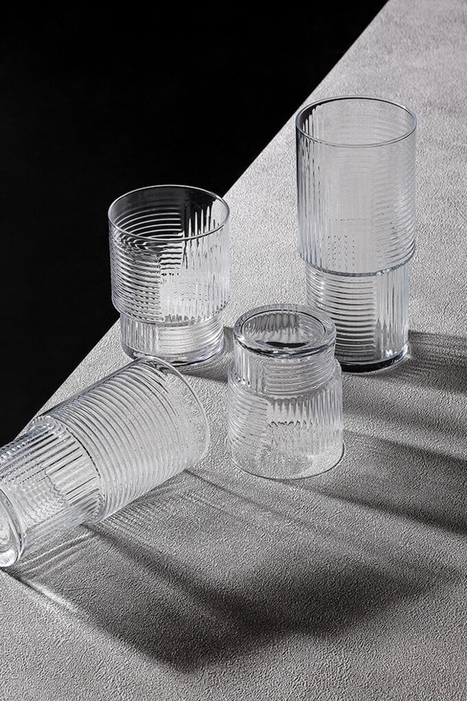 Helen represents the Hellenistic era, guiding us on a centuries-long journey. A journey of understanding the evolution of architectural styles over time. Inspired by the majestic columns of this ancient era, it was designed to mimic the dynamic silhouettes of today's modern skyscrapers. This harmony captures a timeless allure and exudes classic elegance. The various sizes of tumblers in the family make Helen suitable for all users' needs, and they can be stored easily in today's modern, compact kitchens by the help of its stacking ability. Raise your glass to the timeless elegance of the Helen Family, where the past meets the future in every sip.