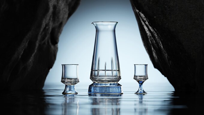 The wine set consisting of a decanter and glass combines historical inspiration with functional design, embracing the Chinese sauce wine culture. The decanter's twelve engraved lines create a captivating play of light, while the cup reflects the charm of the Ming and Qing dynasties. This harmonious blend of tradition and innovation makes the »Time Sauce Wine Set« a noteworthy addition to any table.