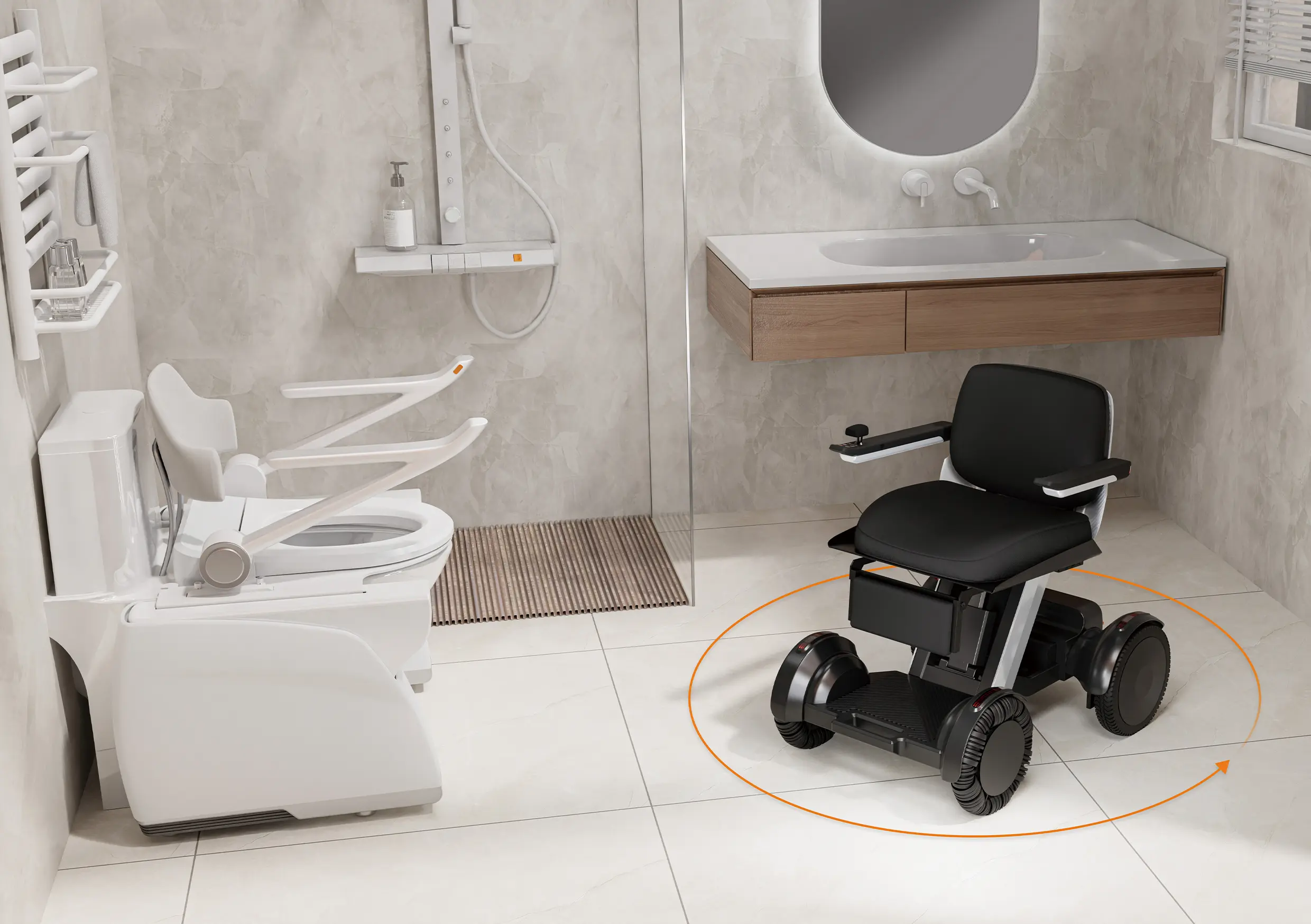 This comprehensive solution addresses various factors of mobility difficulties for the elderly through an innovative bathroom assistance system. Utilizing AI Radar scanning and 3D recognition technology of assisting wheelchairs, it achieves seamless connection between toilet use and showering, enhancing user experience and safety of the elderly. Through thoughtfully designed styling and unified interaction interfaces, elderly users can easily learn and operate the system. The barrier-free design enables smooth interaction across multiple bathroom scenarios, empowering elderly users living independently to operate the system with autonomy.
