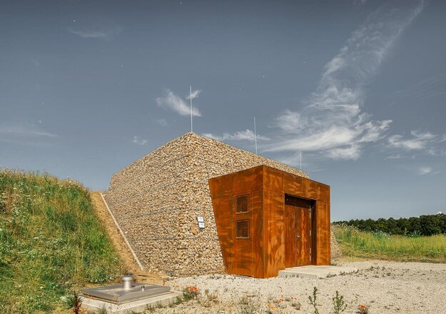 The location of the new elevated tank, along with the design of the gabion facade and Corten steel entrance, combines aesthetic and technical requirements that align with Bamberg's status as a UNESCO World Heritage site. The landscaping takes into account ecological and historical conservation guidelines. The monolithic reinforced concrete tank has a capacity of 1,000 m³ of drinking water and is equipped with the latest electrical and plant technology, ensuring reliable water supply.